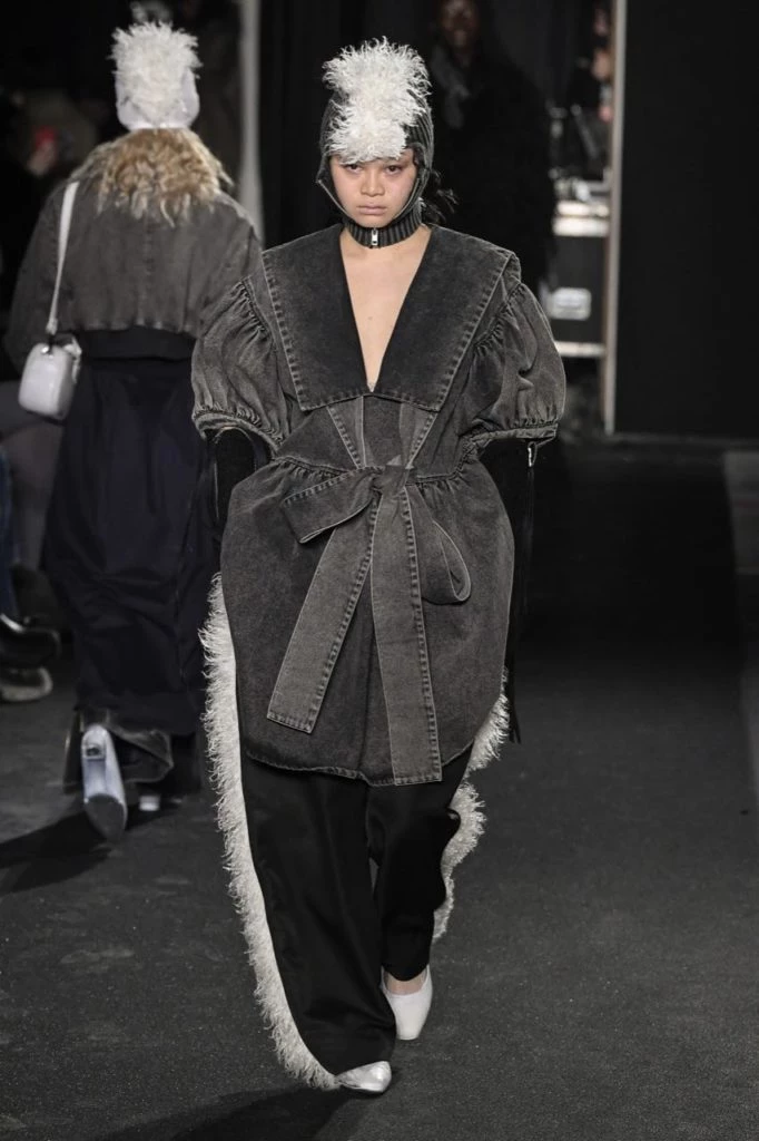 La firma del francés Victor Weinsanto apostó por exageradas proporciones, tan desmesuradas que las modelos debían entrar de lado para atravesar la puerta y poder desfilar.