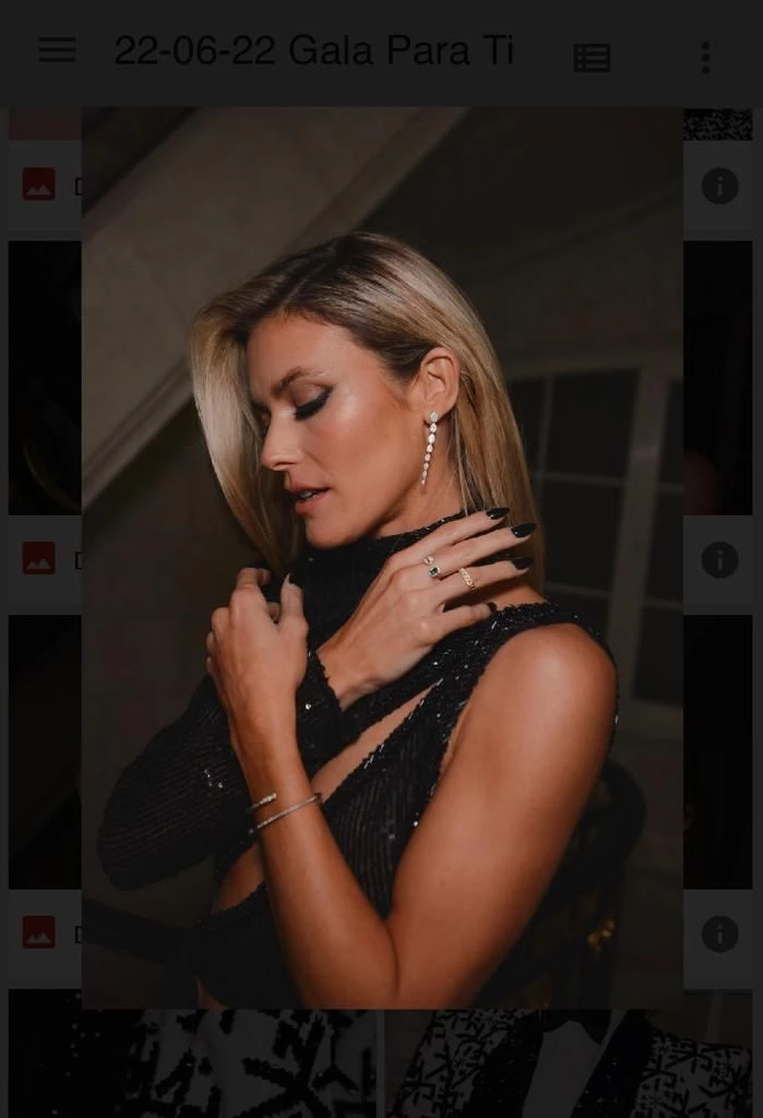 Pía completó su look con joyas de Flor Boskis Stad, llevó un par de aros de oro blanco con brillante, esclava de oro blanco, anillo de cadenas de oro con esmeralda y brillantes y anillo cruzado de oro amarillo y brillantes.