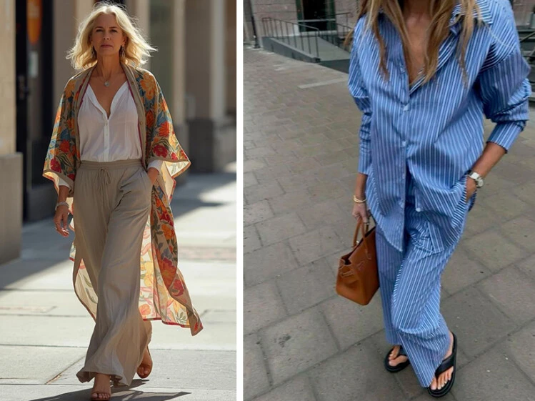 Hoy cambiamos el enfoque: en vez del clásico vestido, probá un set relajado tipo pijamero (camisa + pantalón amplio). Es tendencia, no se pega al cuerpo y deja circular el aire.