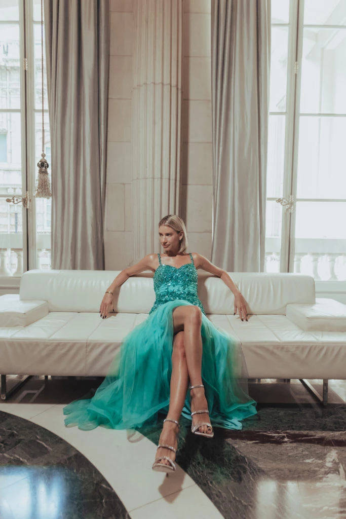 Anna integra el top five de las diseñadoras destacadas para los momentos especiales. Desde vestidos largos y monos de gasas plisadas, minivestidos de pailletes, modelos hechos en tules con glitter hasta vestidos largos de seda con plumas. “Mi especialidad son las graduaciones, las madrinas, los civiles y los vestidos de fiesta para el día y la noche”, agregó Anna.