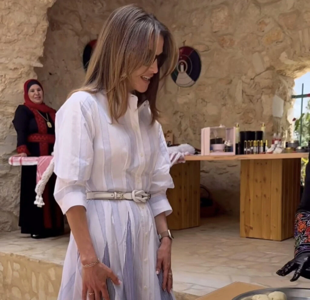 La monarca se reunió con un grupo de mujeres en las aldeas de Eira y Yarqa para hablar sobre la importancia de la agricultura y no decepcionó con su atuendo. La reina de Jordania lució espléndida con un básico que vamos a querer tener la próxima primavera verano 24-25 en nuestro placard.