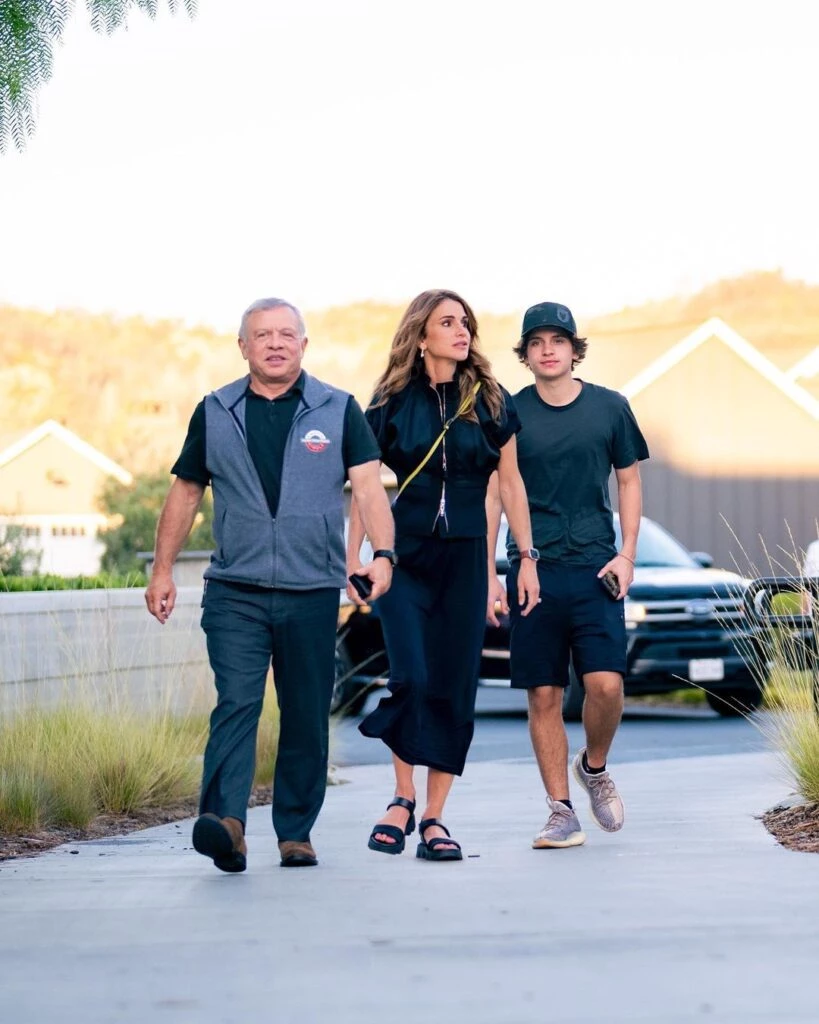 En el caso de la princesa Salma, optó por un look muy juvenil: camiseta blanca de algodón de Chloé y jeans ajustados en color azul claro. Por su parte, el príncipe Hashem también usó total black como su madre: camiseta, bermudas, gorra con visera y zapatillas deportivas en color lila.