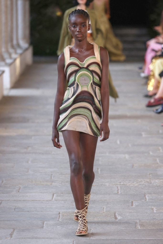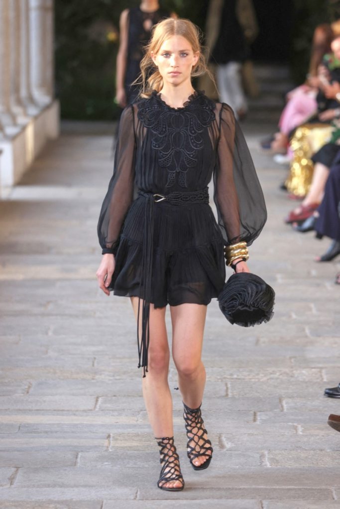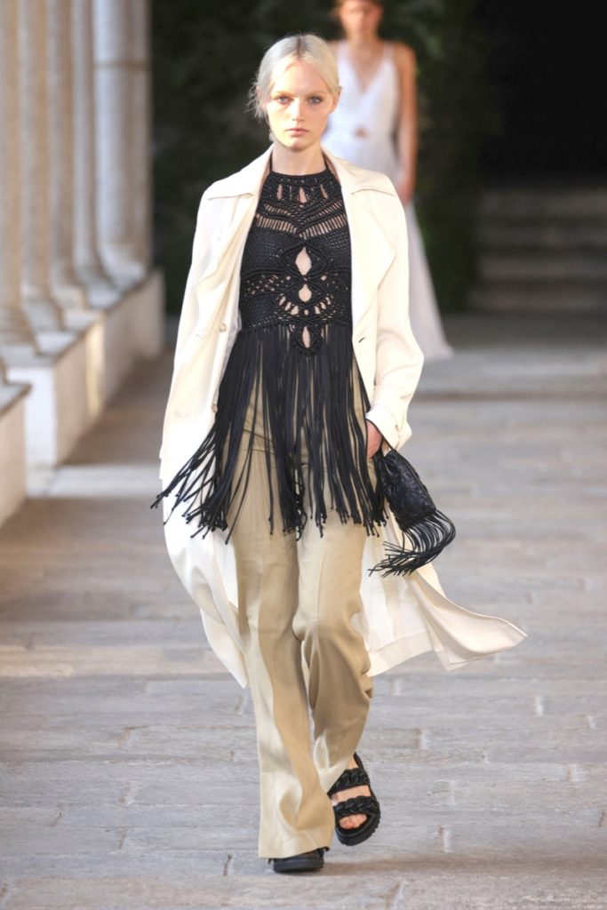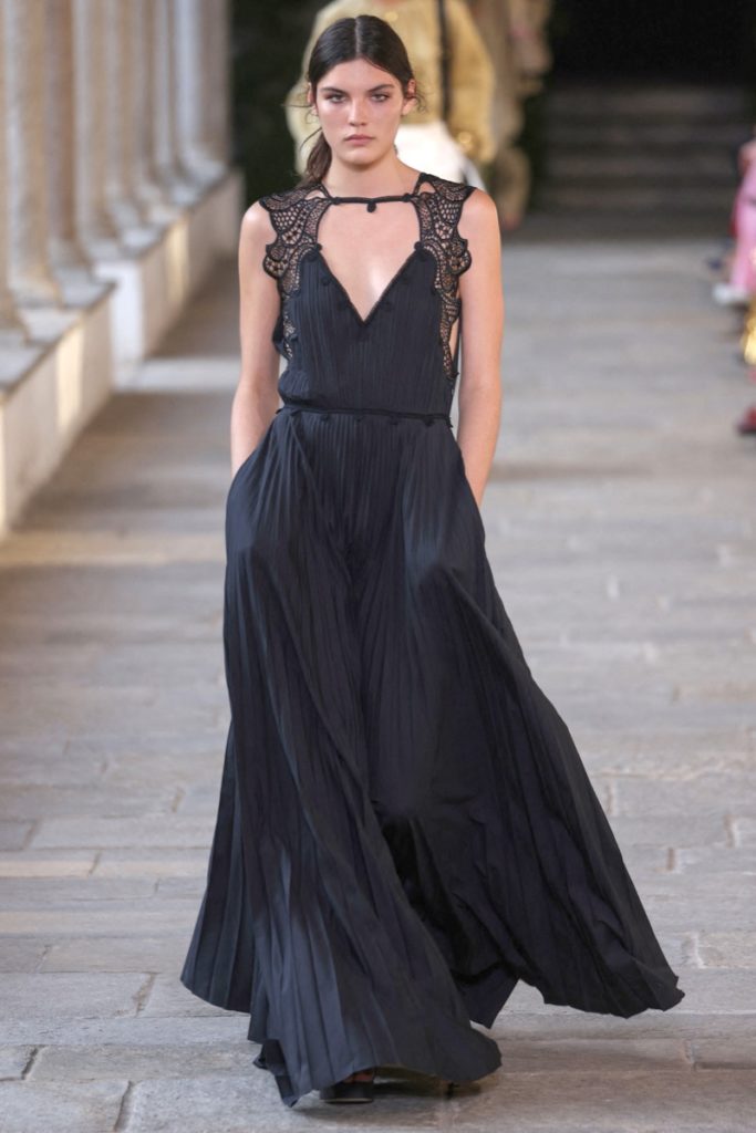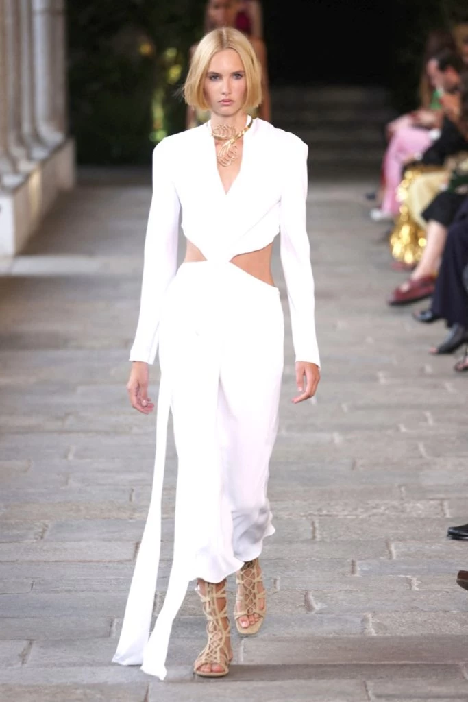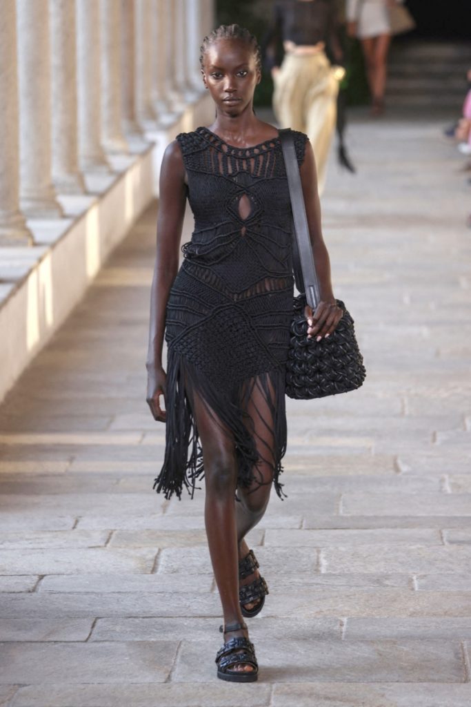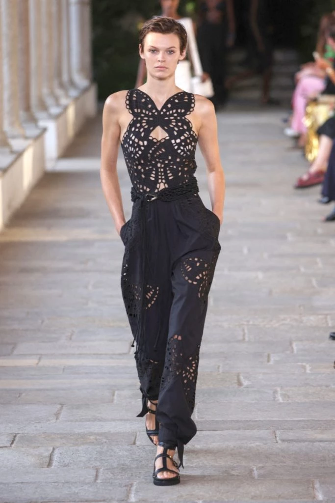Cut outs estratégicos, superposiciones inesperadas y mucho trabajo artesanales como el crochet dan forma a esta propuesta "femenina y sensual" dominada por la prenda más icónica de la casa, los vestidos, que se mostraron en sus dos versiones, cortos como largos.