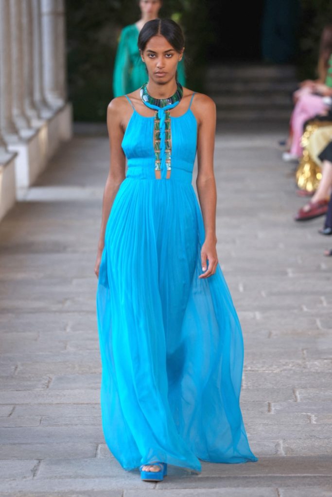 La diseñadora de 71 años consigue mantenerse relevante con una colección de elegancia sencilla, con prendas ideales para fiestas de noche, algunos diseños para el jardín o creaciones perfectas para un día de campo o para un paseo en la playa.