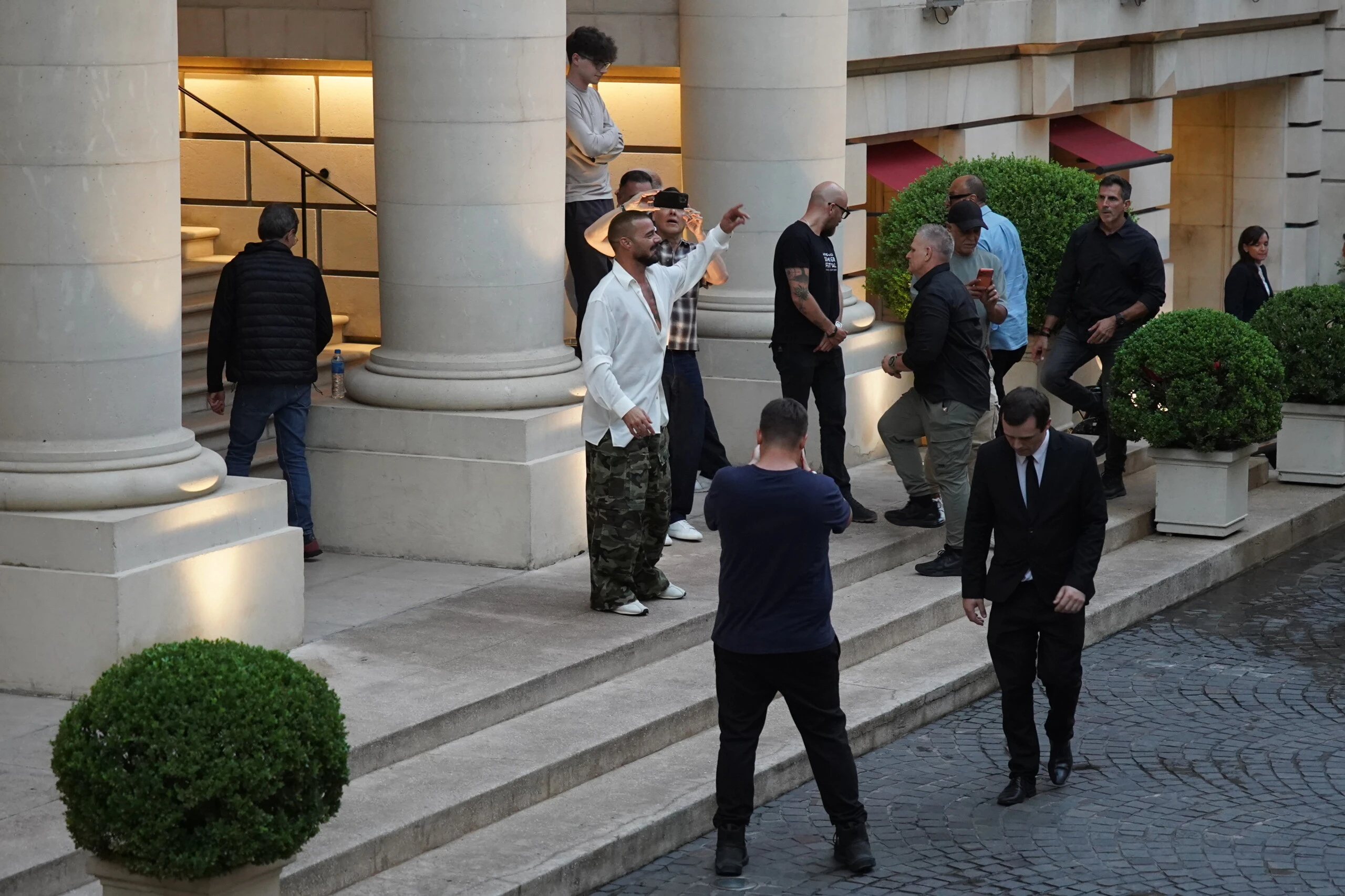 Bailó, saludó, respondió a los gritos y sostuvo una conexión constante con quienes lo esperaban en la calle, demostrando que su estilo no solo pasa por la ropa, sino también por su energía.