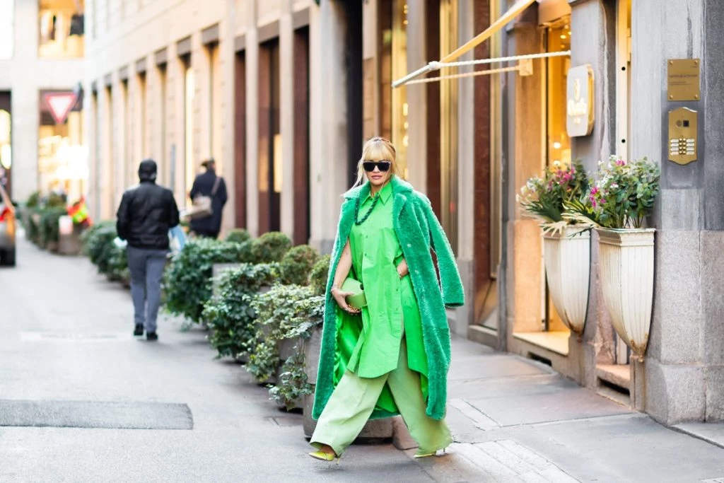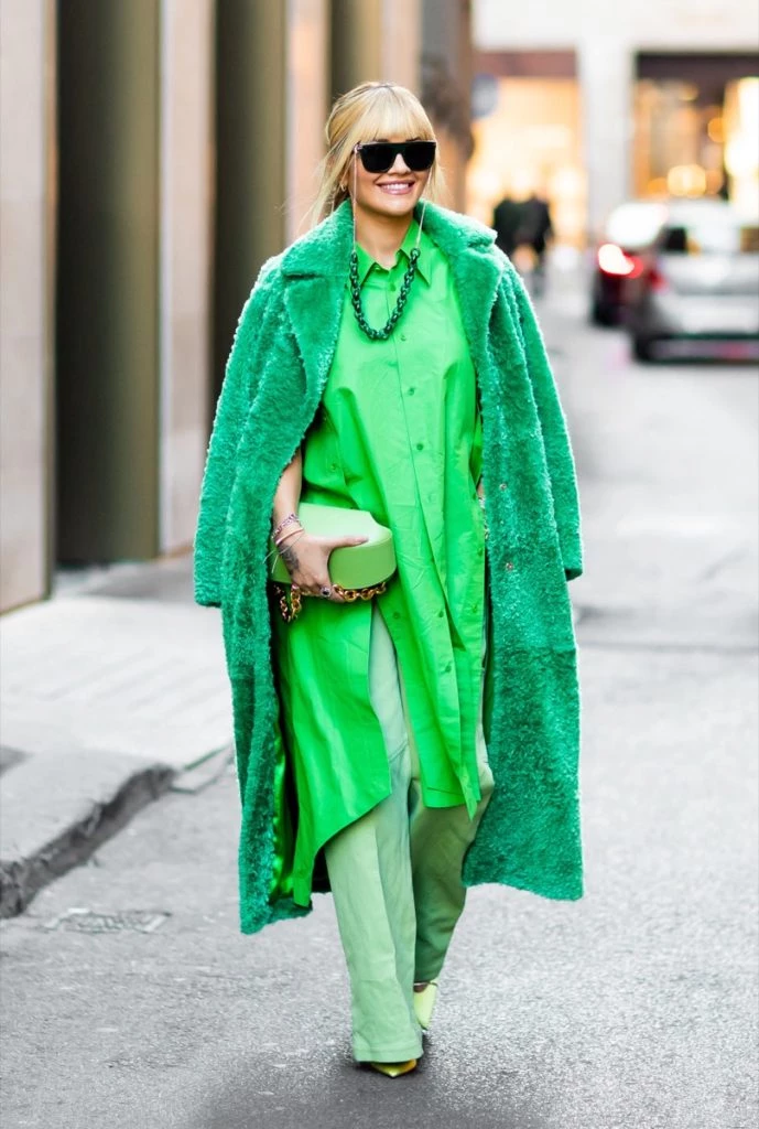 Rita Ora eligió el color verde que sigue siendo tendencia en el invierno 2022