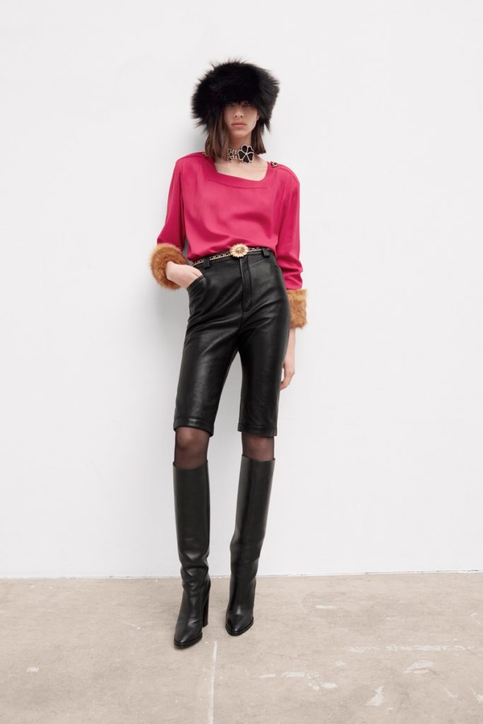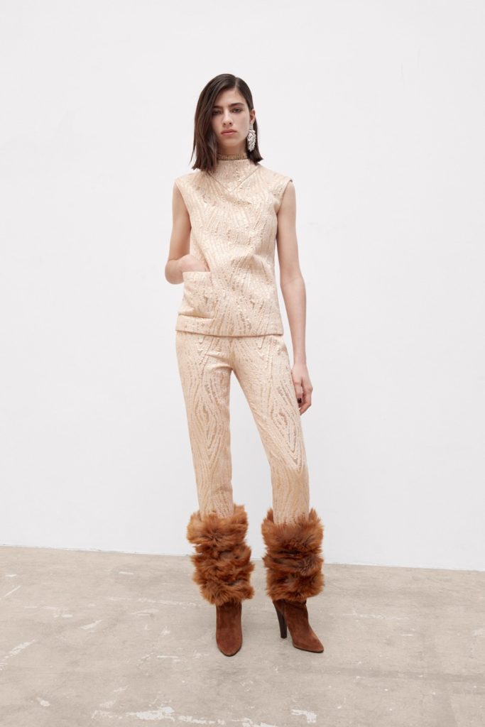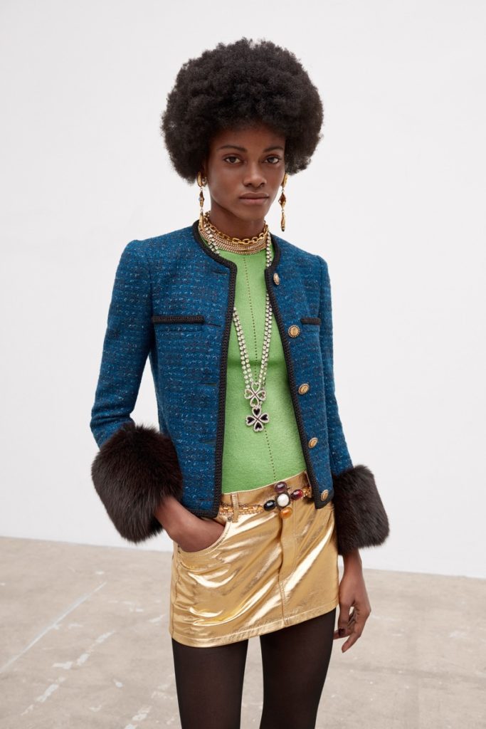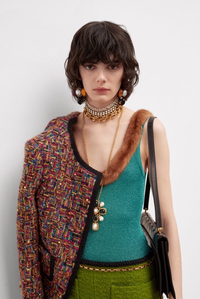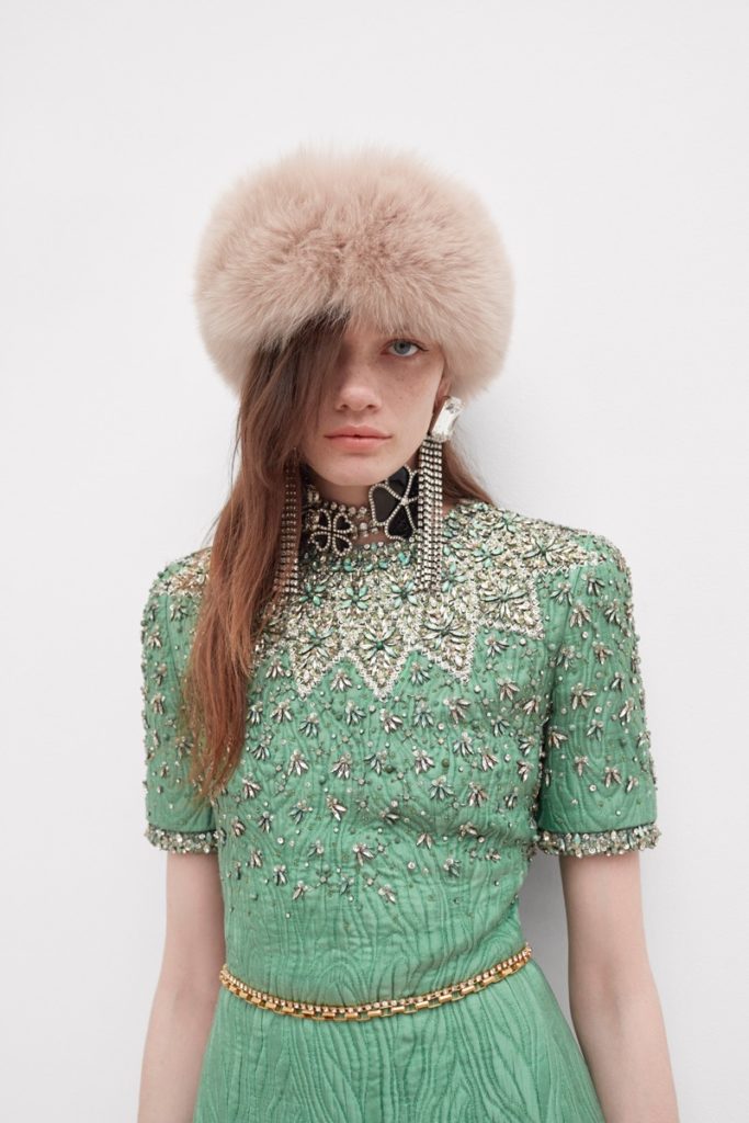 Detalles como mangas y sombreros de piel, collares y aros de fantasía doradas con grandes piedras de colores y perlas añaden un fuerte sabor a la colección.