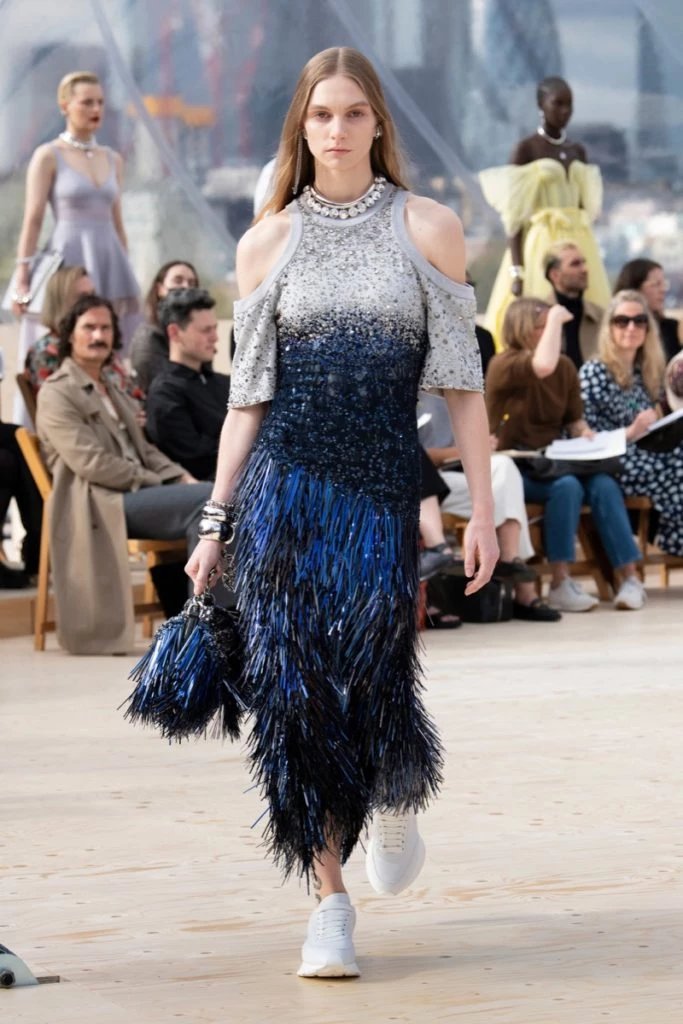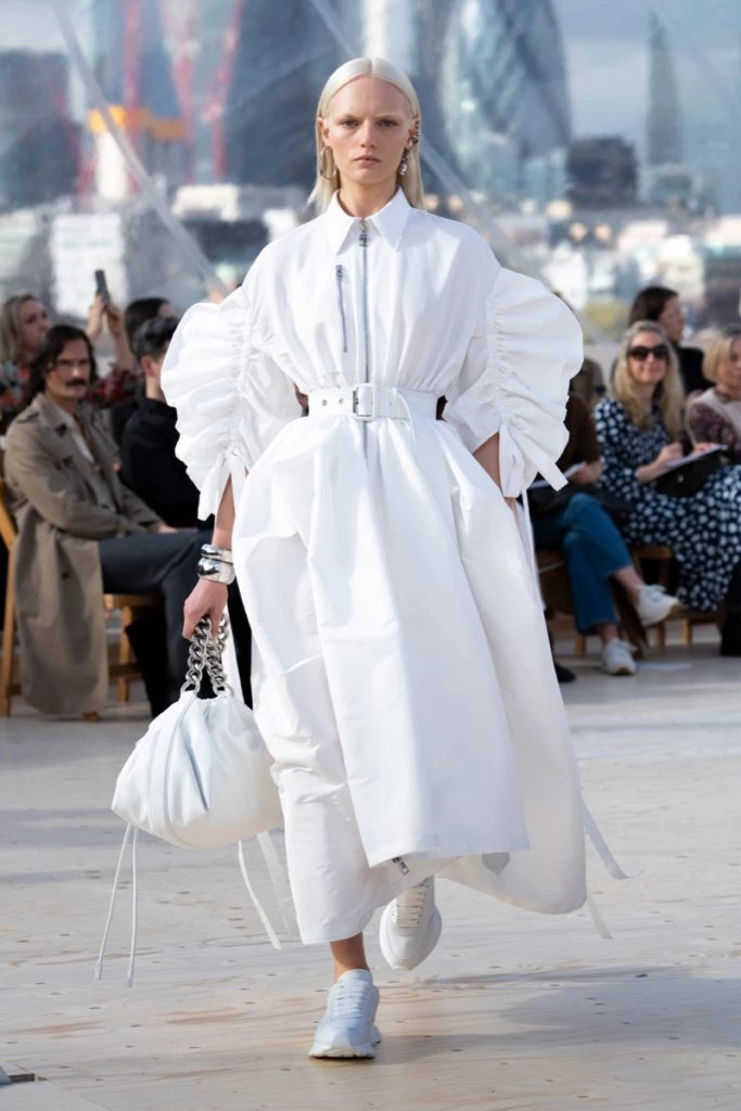 La nueva colección primavera verano 2022 de Sarah Burton para Alexander McQueen se presentó con un desfile presencial y está inspirada en Londres, en sus calles y en sus secretos.