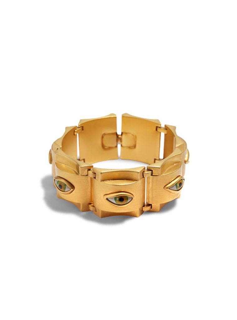 Como novedad, se incorporan unas piezas que contiene ojos de cerámica, patinado a mano en el característico oro de la casa inspirado en Giacometti.