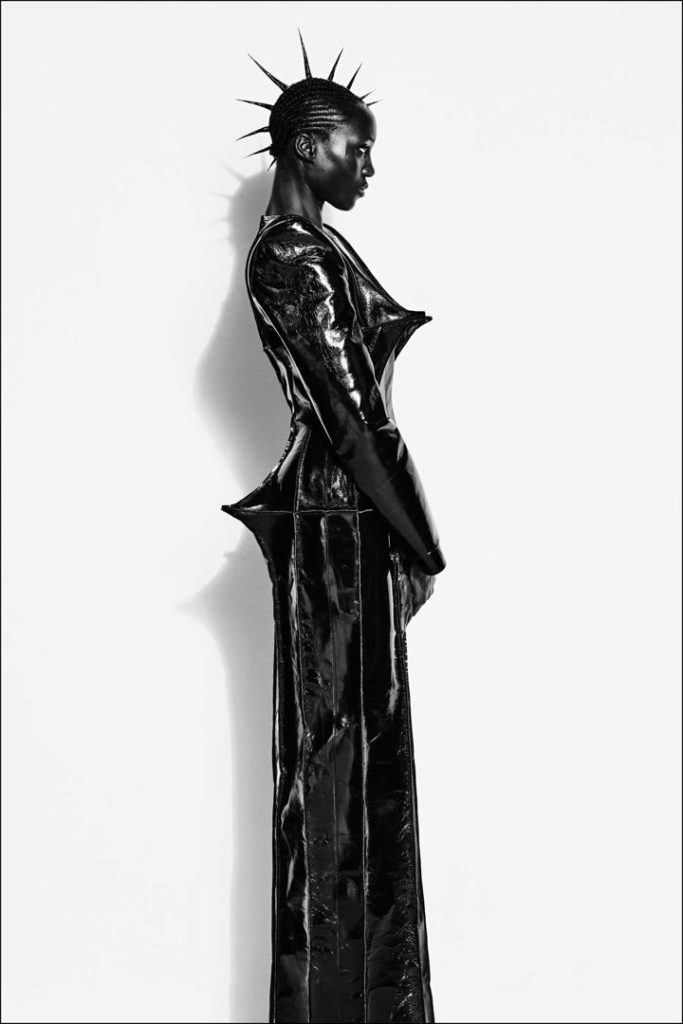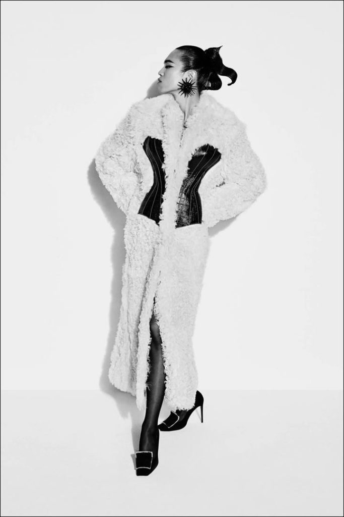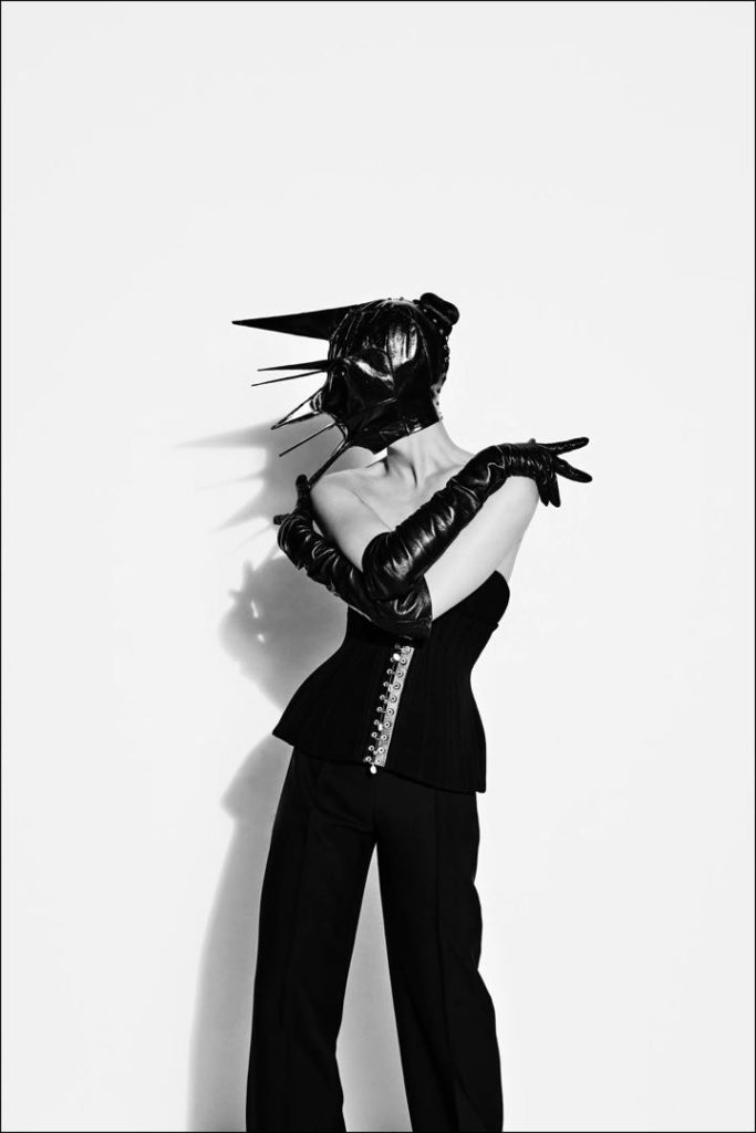 Se presentaron abrigos de color blancos de lana de oveja que se completaban con corsés de cuero negro; los vestidos se definían con cuellos de pasamanería y ribetes blancos; mientras que los blazers de terciopelo se cerraron con grandes candados dorados.