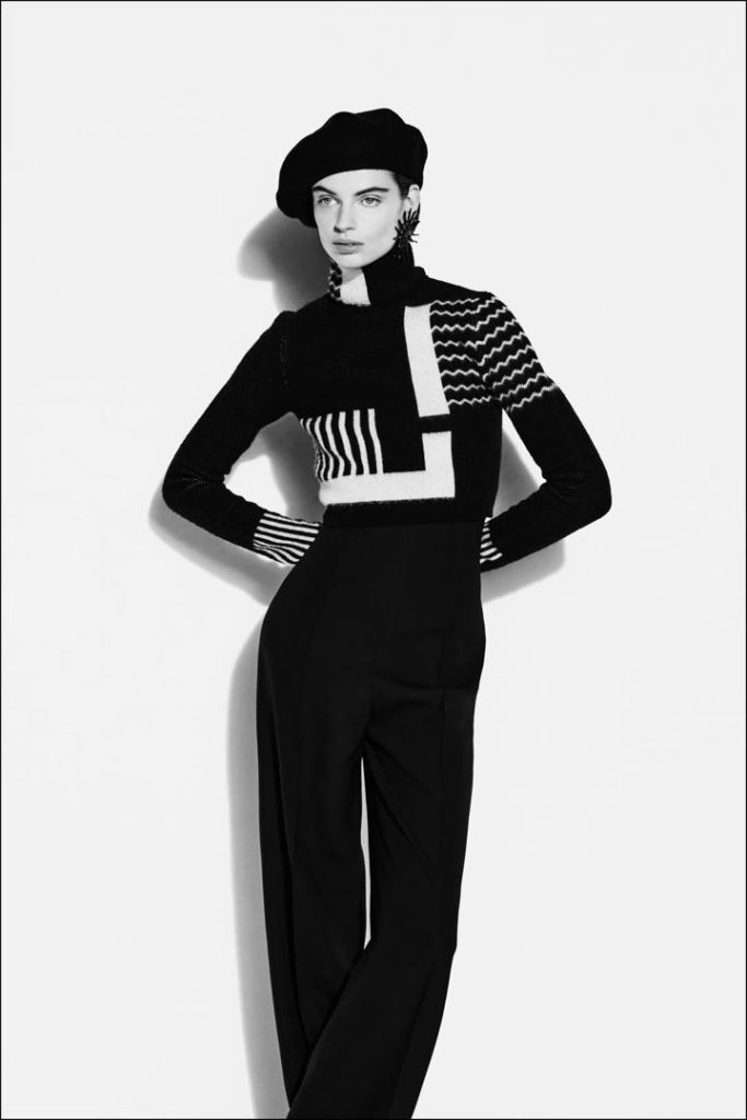 "Hemos recreado estos suéteres de jacquard de los inicios de la carrera de Elsa", añadió Daniel, en referencia a una polera ceñida al cuerpo con cuello alto y diseño de teclas de piano.