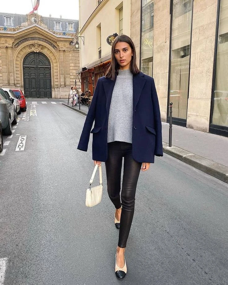 - Con pantalón de cuero: Combinar ballerinas con pantalón de cuero es, para mí, una de las formas más originales y sofisticadas de jugar con contrastes en un look. El cuero aporta esa energía audaz y moderna, mientras que las ballerinas suavizan el conjunto con su feminidad y delicadeza. Es una mezcla que no solo es súper cómoda sino tambien estilosa.