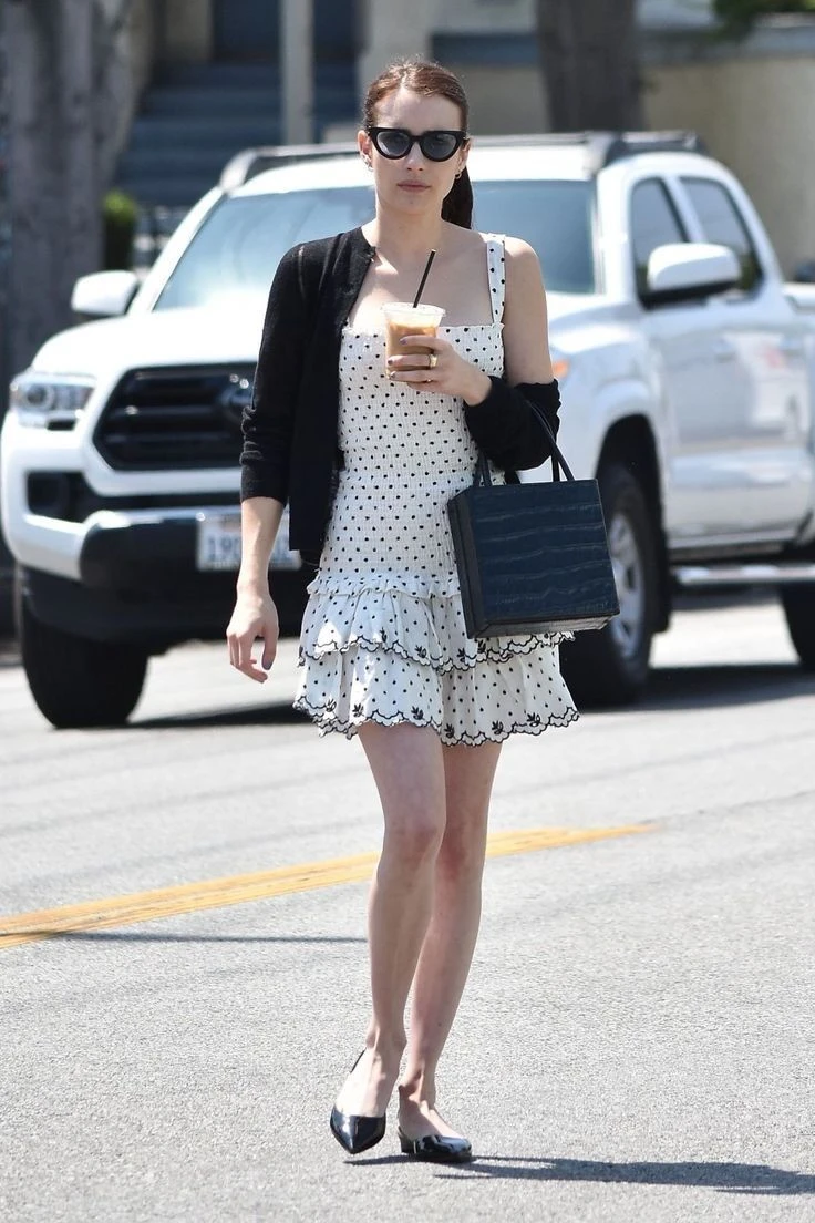 - Con vestidos: Las ballerinas se llevan súper bien con vestidos, ya sea cortos, midi o largos. Para un look romántico y femenino, me encanta combinarlas con vestidos florales o de tejidos ligeros como el algodón o la gasa. Si el vestido tiene un aire vintage, las ballerinas le dan ese toque final perfecto.