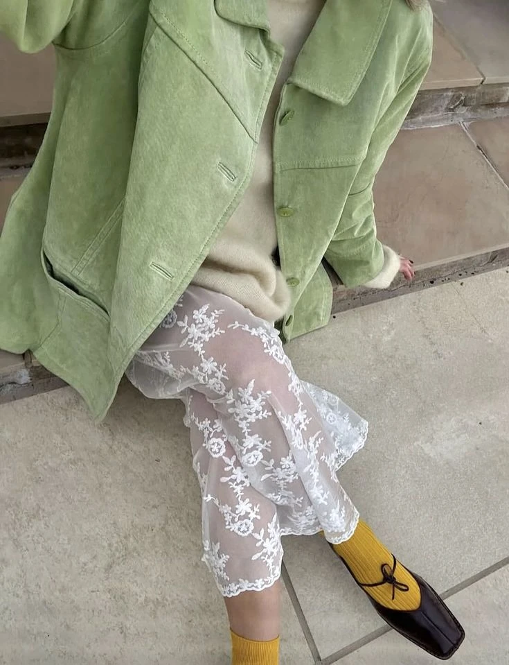 Pasear en un día de invierno y encontrar a una fashionista saliendo del subte con una falda de encaje blanco y un suéter gris oversized fue una revelación. El contraste entre lo delicado del encaje y la fuerza de la lana gruesa crea una combinación inesperada… ¡pero completamente irresistible!
