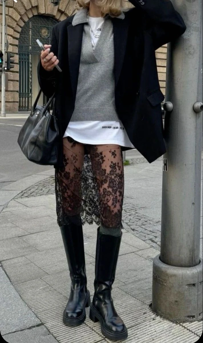 Según las tendencias, las faldas de encaje son protagonistas indiscutidas esta temporada, por ello adaptarlas al invierno con capas abrigadas es una jugada fashionista que vale la pena probar.