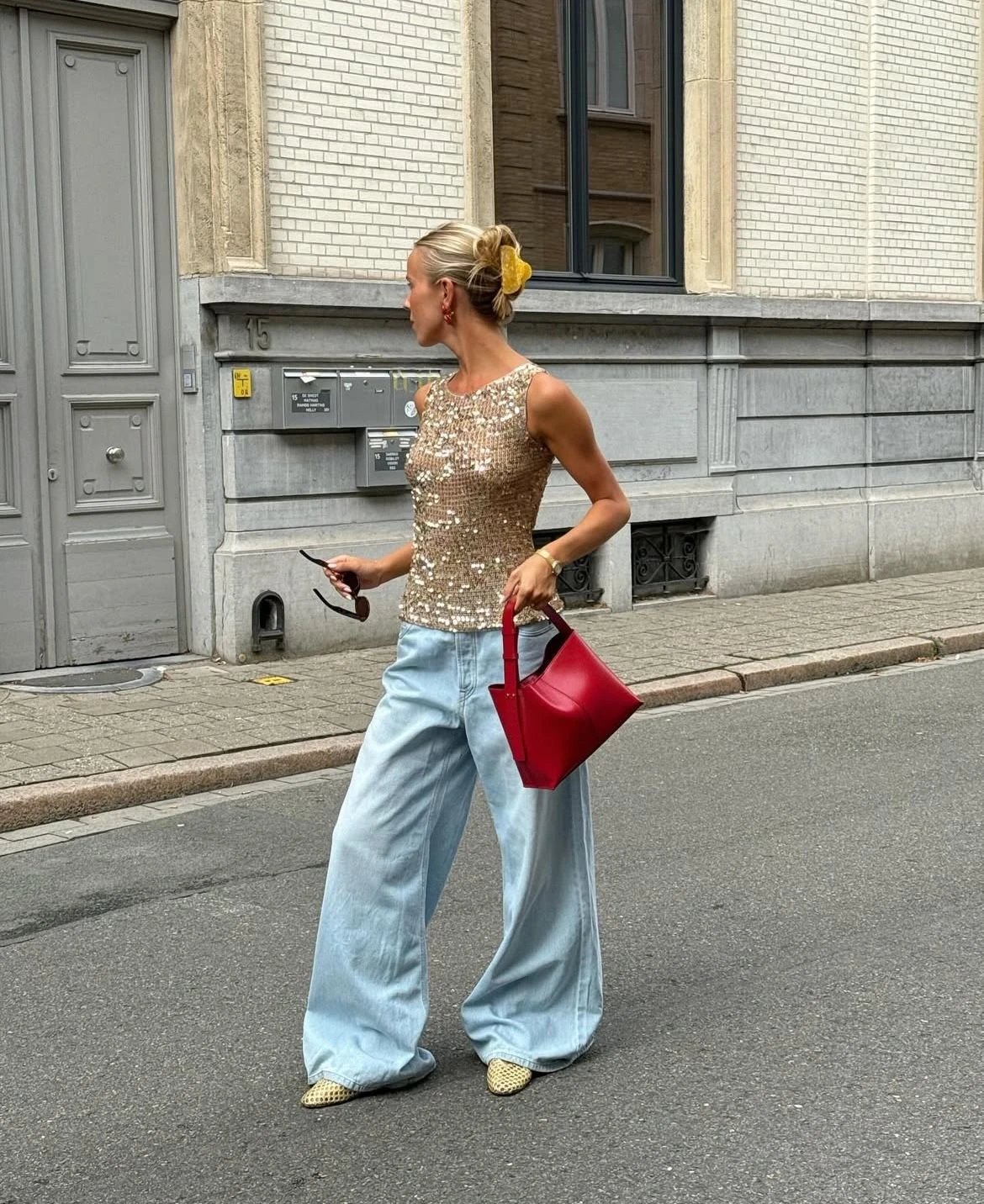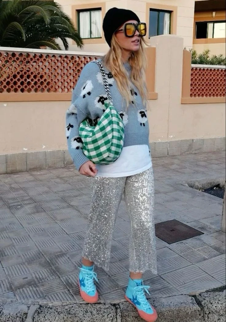 - Urbano: llevá lentejuelas con denim y zapatillas.