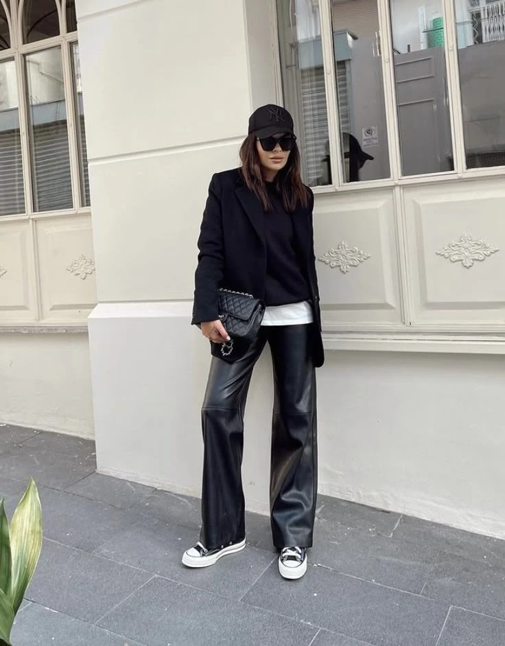 En las semanas de la moda, el pantalón de cuero se volvió protagonista absoluto. En versión wide leg, tipo jogger, cargo, o clásico chupín, siempre hay alguna it girl que lo reinventa.