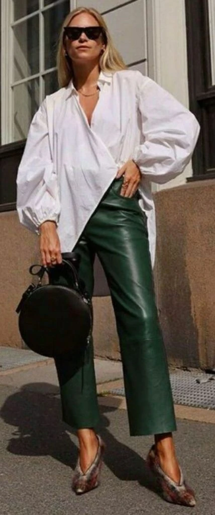 - Sumale color: Aunque el negro es el clásico, los pantalones de cuero en colores (bordó, verde seco, nude o incluso blanco) también están en tendencia.