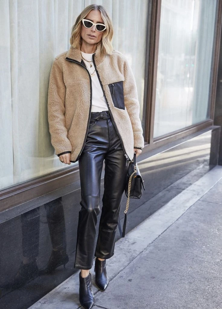 - Jugá con las texturas: El cuero combina muy bien con lana, algodón, denim, seda o satén. El contraste eleva el look y lo hace más interesante.