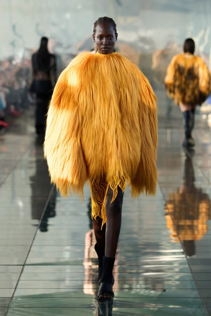 La sastrería experimental le da a Lee su estilo futurista y también celestial. Como de costumbre, esta temporada Lee se basó en un concepto singular: la llama.