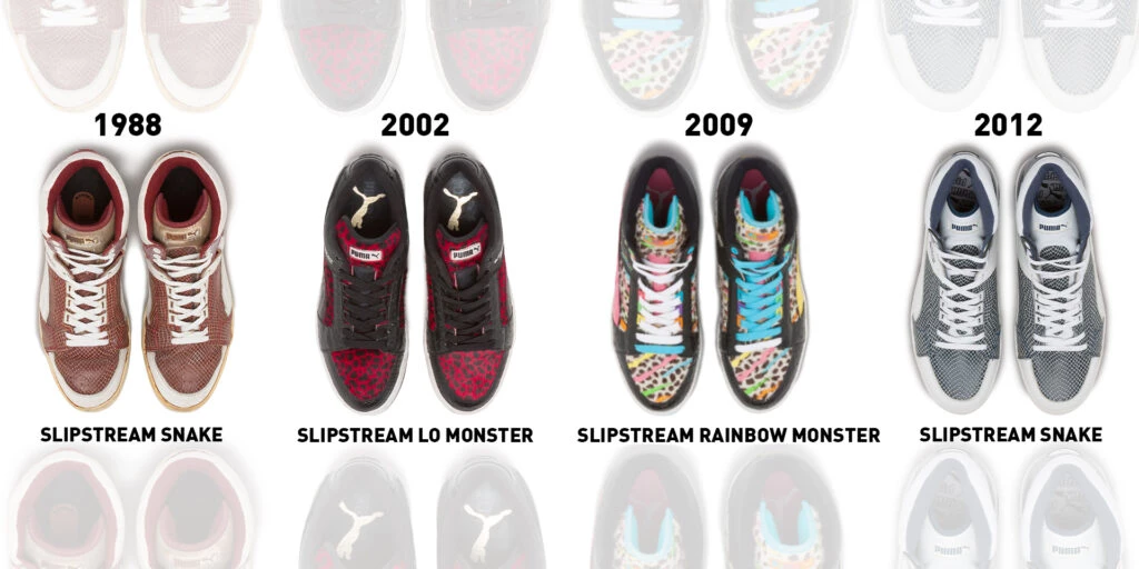 El primer modelo de Slipstream se presentó en 1987. Se distinguían por un calzado de caña alta para jugar al baloncesto y se presentaban como las sucesoras de la “SKY LX”, convirtiéndose en las favoritas de los jugadores de la NBA. Este modelo fue pionero por sus innovadores materiales, como el cuero y la piel sintética. Al principio de los 2000, las “Slipstream LO” se renovaron y, gracias a sus colores alocados, ganaron la reputación de “La Bestia”.