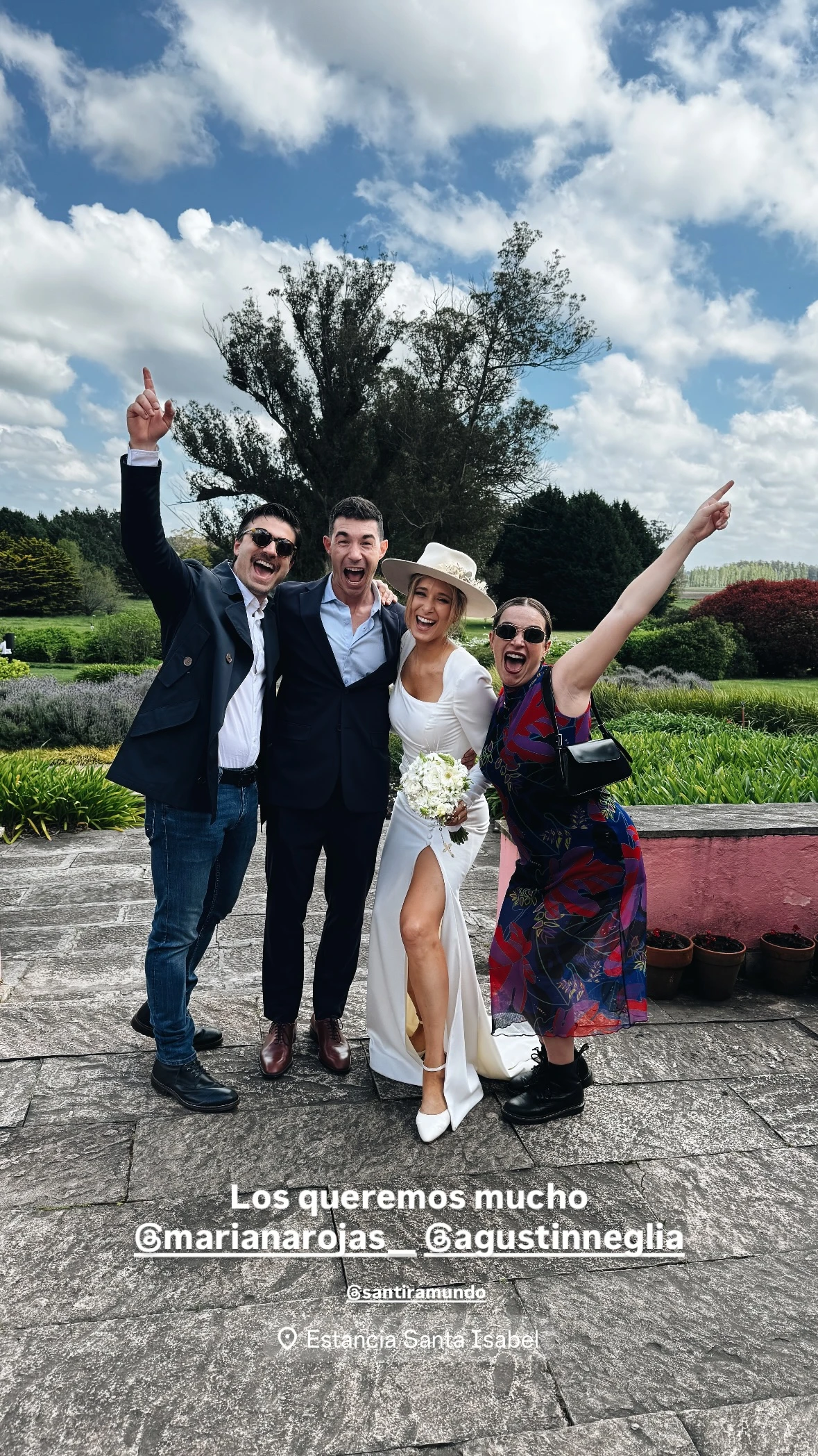 Este fin de semana, Sofía Pachano mostró uno de los momentos más felices: la boda de una pareja de amigos. La actriz y conductora estuvo en el casamiento de Agustín Neglia y Mariana Rojas, junto a su novio Santiago Ramundo. A unos meses de anunciar su embarazo, lució su pancita de seis meses de gestación.