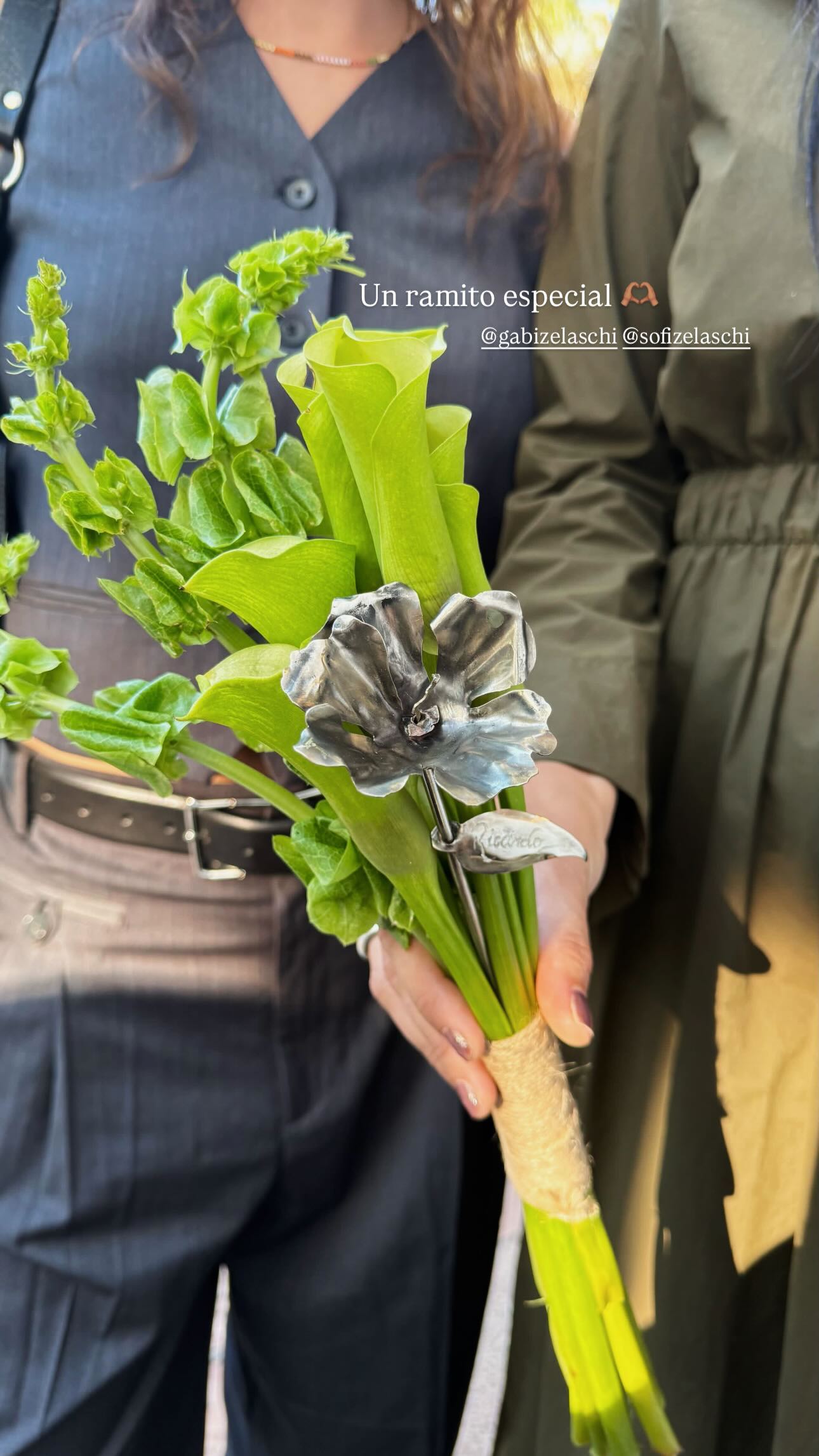 Lejos de las clásicas flores blancas o los arreglos de gran volumen, Sofía eligió un "ramito" que capturó miradas por su frescura, simplicidad y carga emocional.