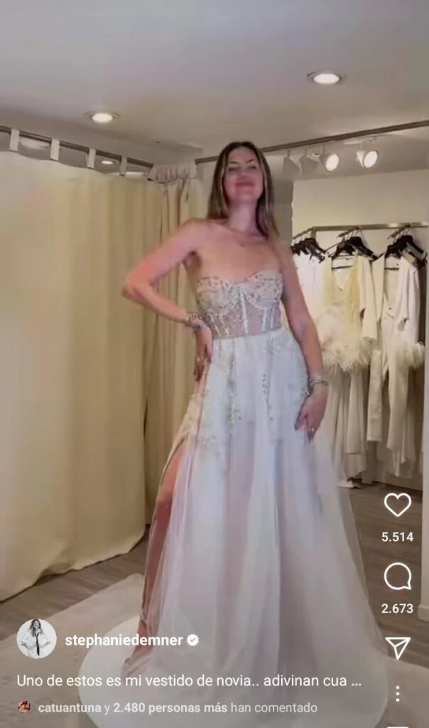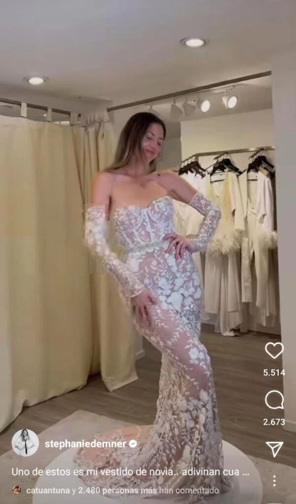 Por medio de su red social, Demner además compartió una serie de vestidos a modo de juego con sus seguidores, para que "adivinen" cuál había elegido. "Uno de estos es mi vestido de novia... ¿adivinan cual? Este reel va a durar una hora publicado quizás", escribió la joven. En las imágenes se pueden ver varios diseños: uno con transparencias, otro con corset y otro con falda con tul.