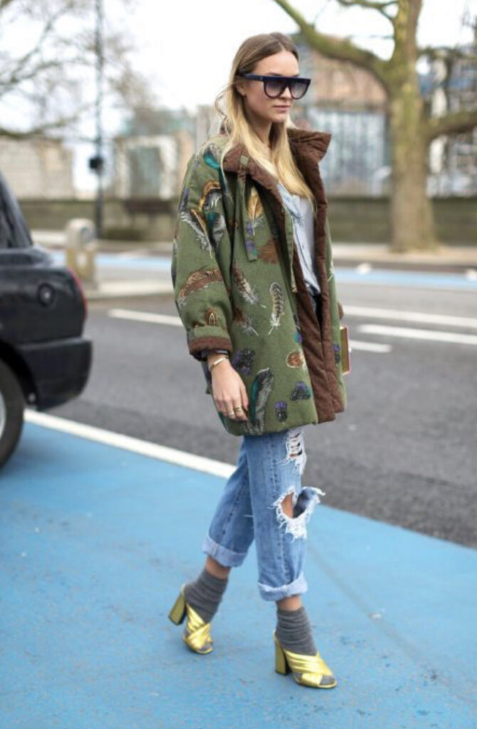 Lo mejor de esta tendencia es que el calzado de verano que antes teníamos que guardar, ahora podemos seguir aprovechándolo durante los días más fríos si le agregamos medias. Y miren qué bien que quedan con jeans, camisa y una campera. El outfit perfecto para usar todo el día.