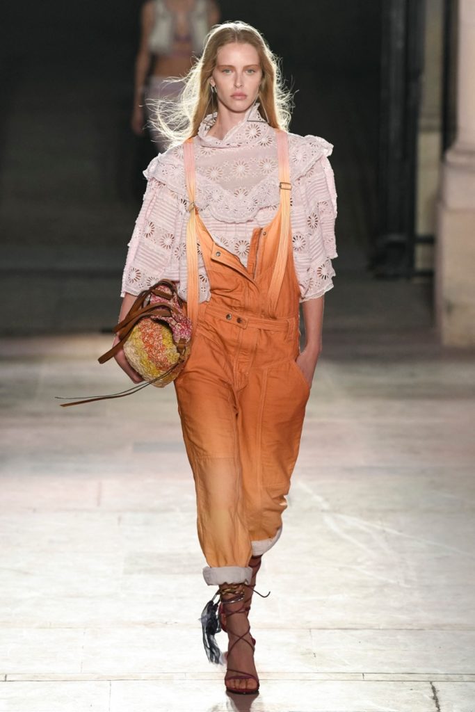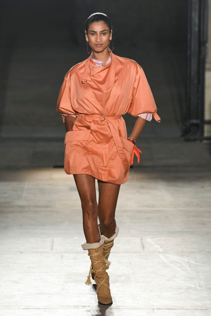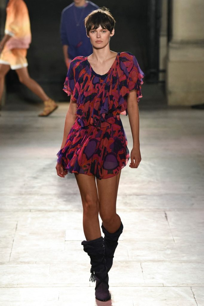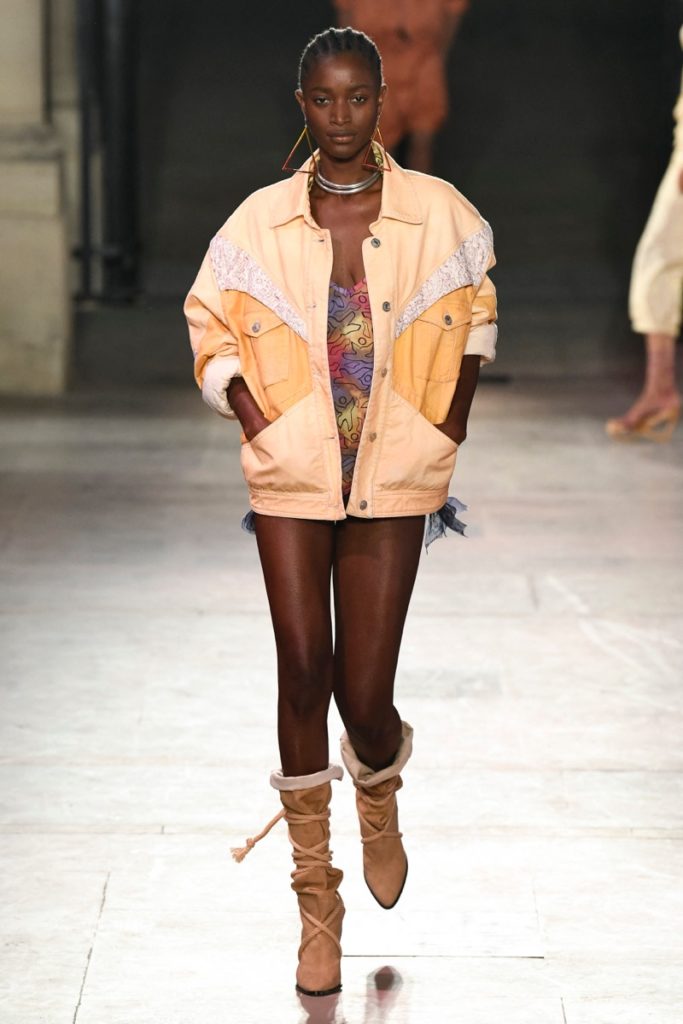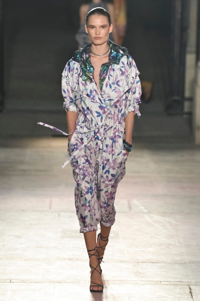 Mucha piel y siluetas longilíneas fueron protagonistas de la pasarela pariscina. Marant incursionó en nuevas texturas como la seda de paracaídas e imprimió novedosas estampas sobre sus prendas más icónicas como los monos y los pantalones.