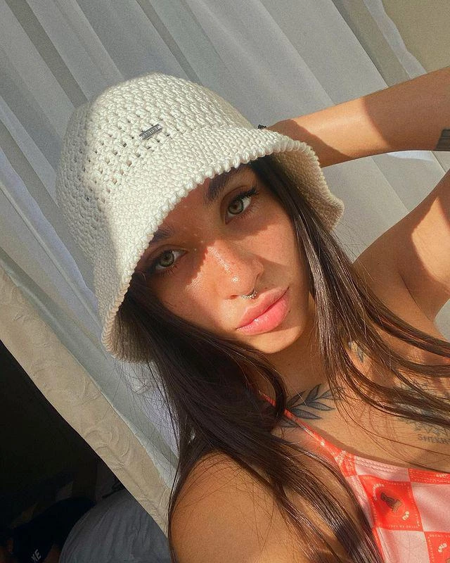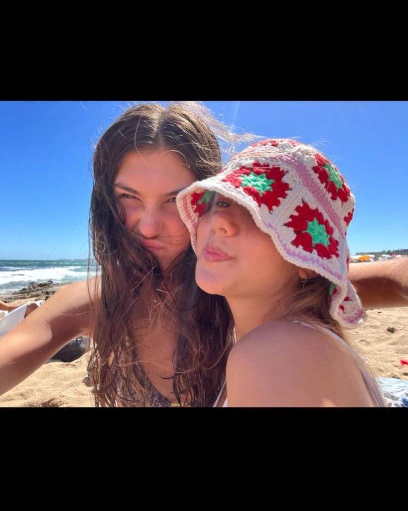 A través de sus redes sociales, posteó varias fotografías dejando ver su piluso a crochet, el favorito para protegerse del sol. Se trata de un divertido diseño con flores, donde predominan los colores pasteles en combinación con el rojo intenso. La joven eligió usarlo con una bikini blanca de dos piezas, donde el protagonista es el gorro tejido.