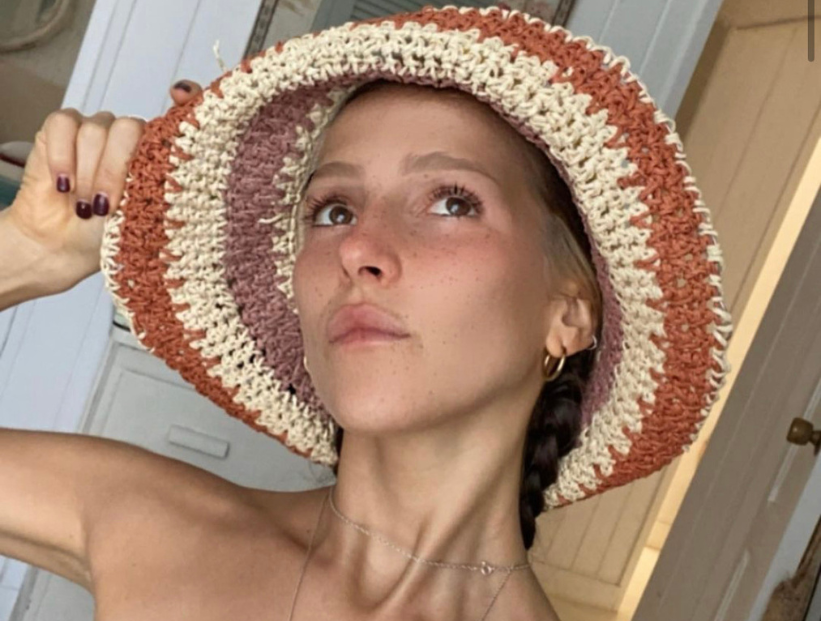 A través de sus redes sociales, posteó varias fotografías dejando ver su piluso a crochet, el favorito para protegerse del sol. Se trata de un divertido diseño con flores, donde predominan los colores pasteles en combinación con el rojo intenso. La joven eligió usarlo con una bikini blanca de dos piezas, donde el protagonista es el gorro tejido.