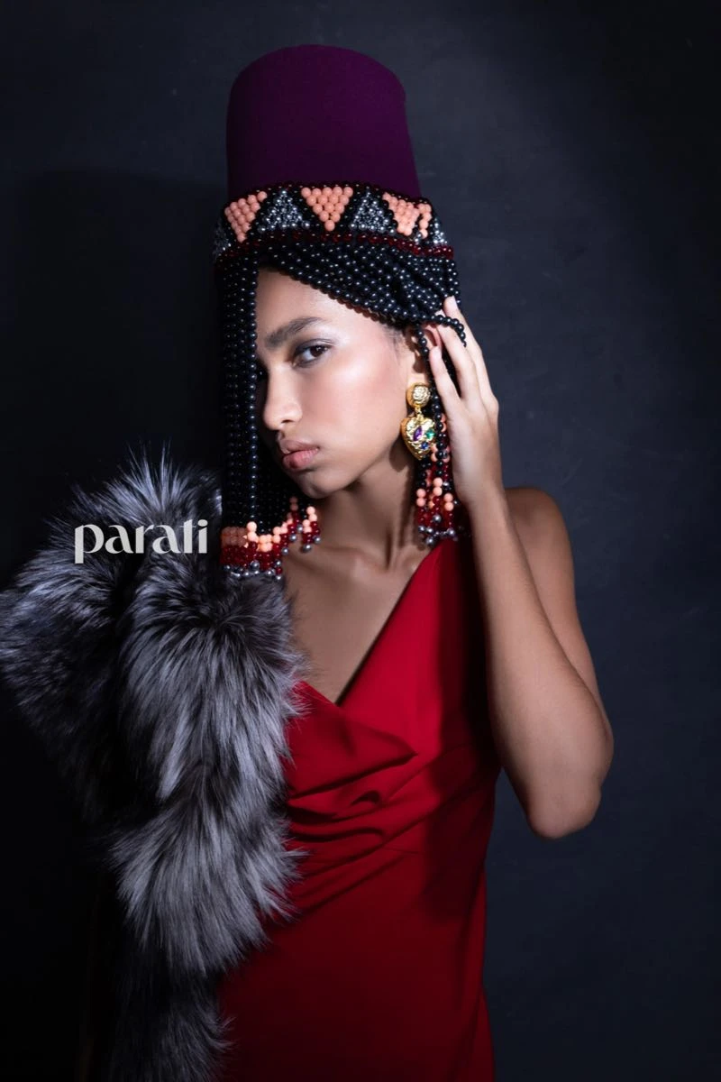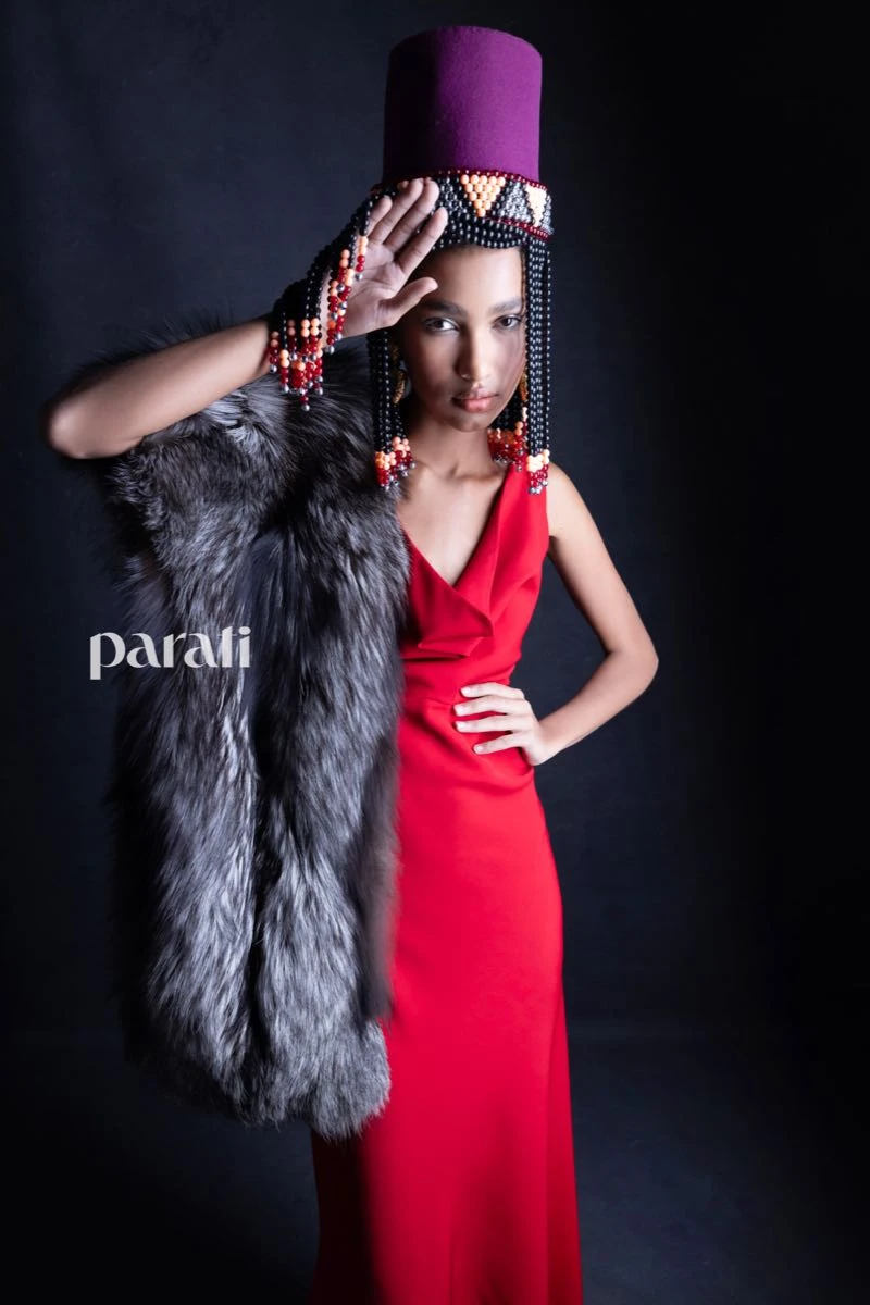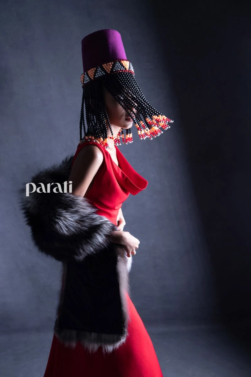 Luego por la legendaria Coco Chanel quien las ayudó a respirar mejor con sus vestidos sin esas ballenas opresivas. La silueta vertical y las líneas netas ayudan a estirar la silueta del vestido donde el color granate dice presente. Como si se tratara de una burka, el fez tiene un flequillo de perlas que hacen que la mirada sea un misterio a develar. La fórmula clásica de vestido + estola de piel es un combo que siempre juega a favor.