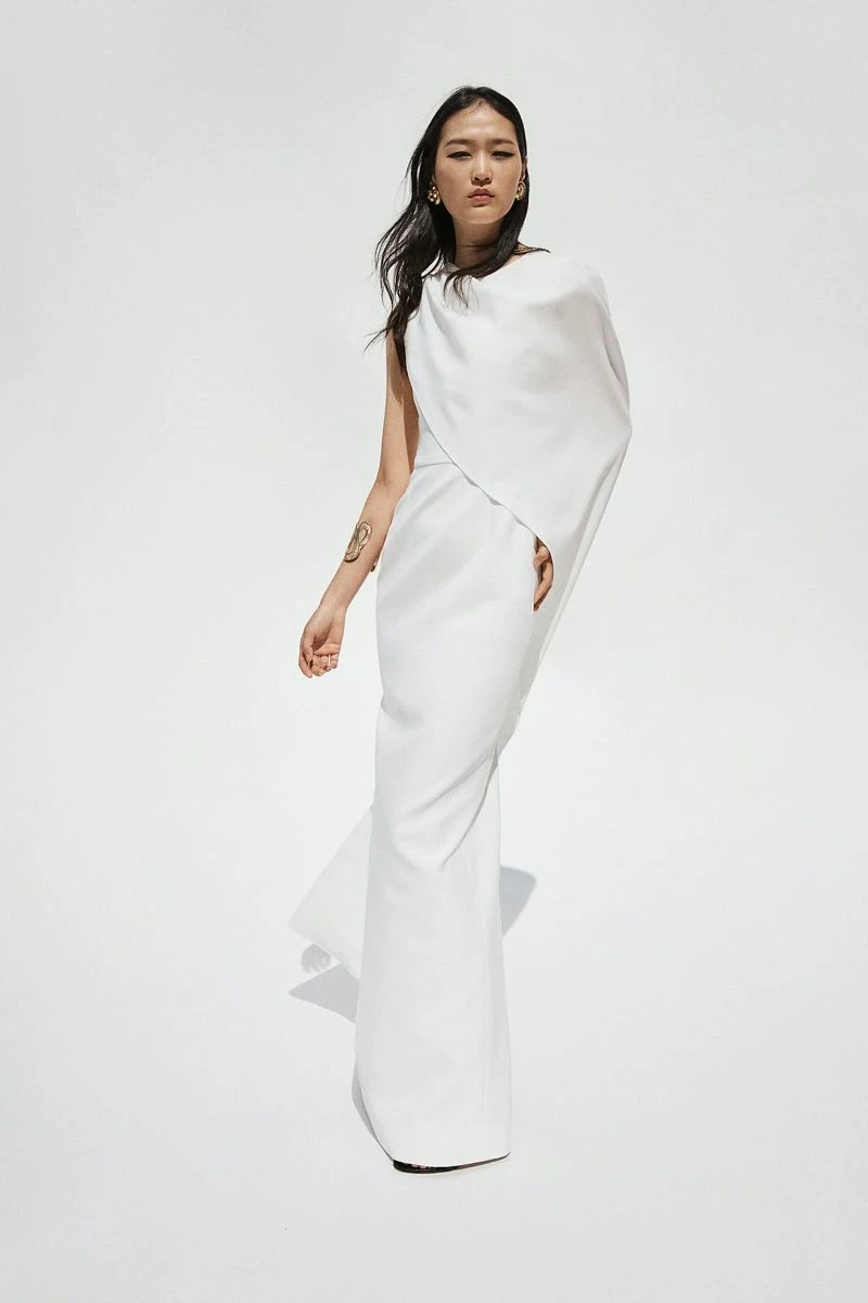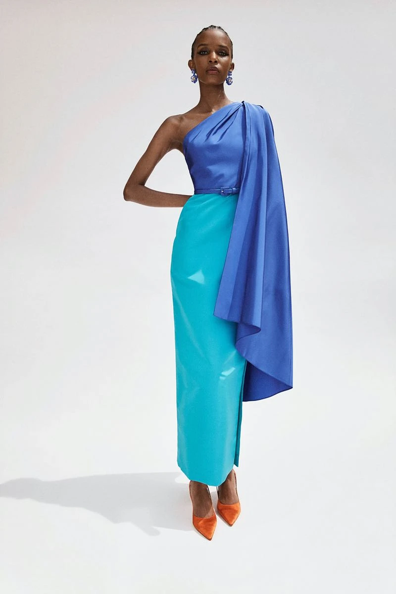 El resultado es “Mythos”, una propuesta donde conviven líneas limpias, drapeados fluidos y volúmenes que esculpen la figura, siempre bajo esa sofisticación latina que Carolina Herrera convirtió en sello.