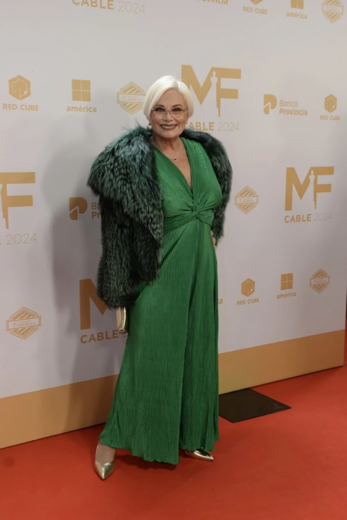 Carmen Barbieri llevó un mono verde y tapado de Gaby Girls.