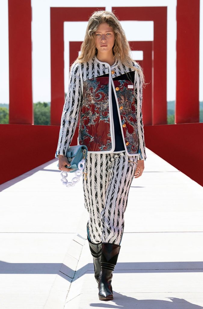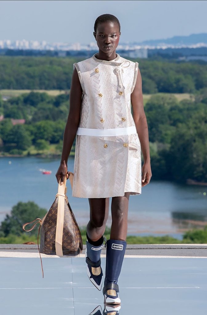 Louis Vuitton presentó su colección crucero 2022 con una puesta en escena en el Axe Majeur, un camino recto de 3,2 km de largo, en las afueras de París, obra monumental del escultor y artista plástico Dani Karavan. El camino comienza en el pueblo de Cergy y pasa a una isla, con hermosas vistas de la ciudad parisina. Nicolas Ghesquière, el director creativo de la marca, eligió un escenario increíble para darle marco especial a su colección.