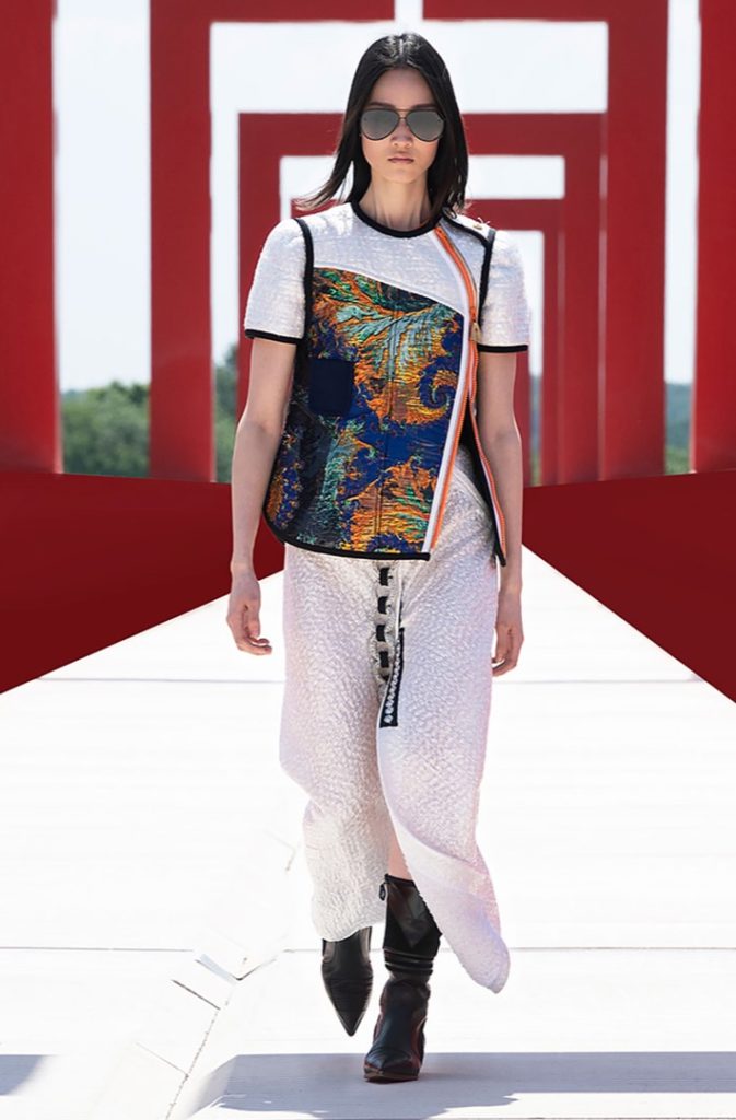 "Una colección de looks orgullosos y positivos que avanzan de frente, con serenidad", dijo sobre la colección. "Son la imagen de la armonía en un entorno tan cercano y tan lejano, sin fronteras y abierto a la aventura. No se necesita nada más que el más hermoso de los pasaportes: la creación. Como siempre, es ilimitado y gratuito", explicó.