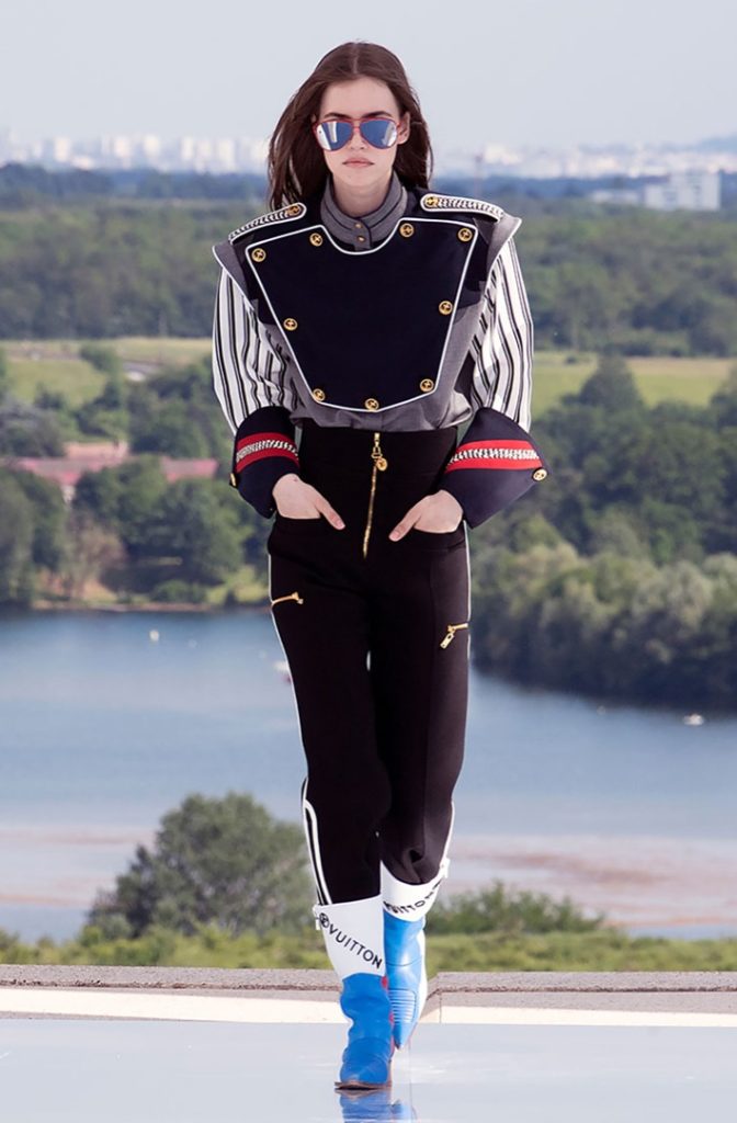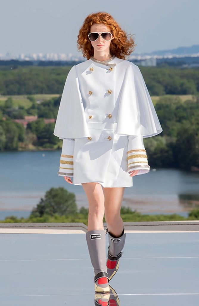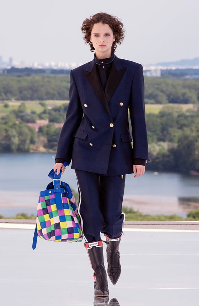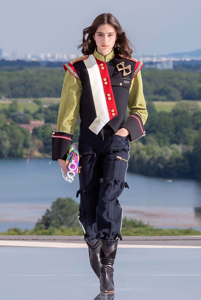 Para su línea Cruise 2022, la etiqueta se inspiró en el potencial ilimitado de la imaginación y creó una colección un poco ortodoxa. Un aire futurista, inspiración japonesa y grandes volúmenes podrían resumir a grandes rasgos esta colección. Hay hombreras y trajes con detalles tipo charretera, que le dan un toque militarista al trabajo de LV.
