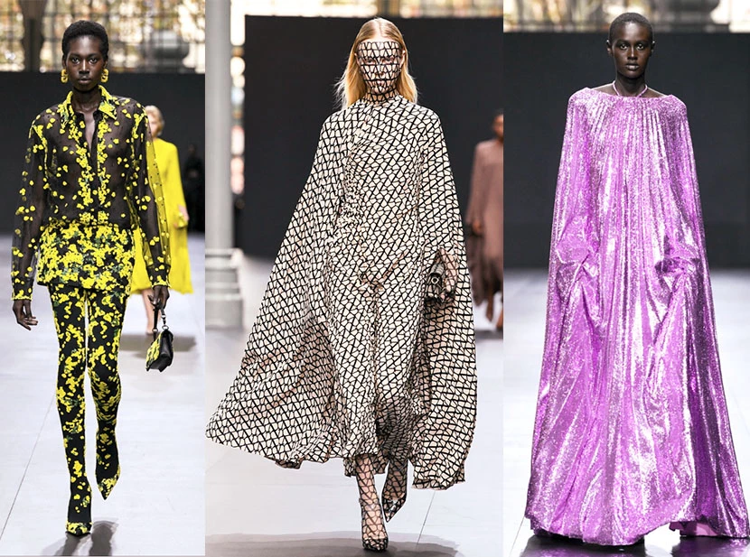 Pierpaolo Piccioli quiere llenar la primavera de capas, de capuchas, de lentejuelas y plumas , de camisas almidonadas blancas y otras referencias a la sastrería masculina como guiño a la fluidez de género.