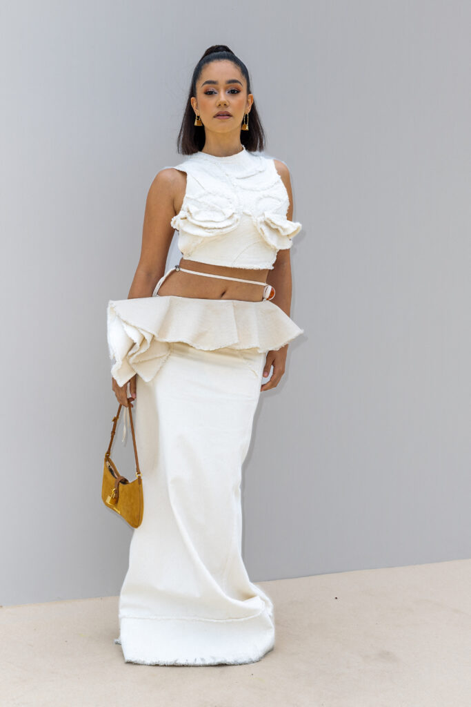 Simon Porte Jacquemus eligió esta vez el espectacular palacio del siglo XVII en las afueras de París, que alguna vez fue el hogar de María Antonieta, para presentar su última colección. En bote llegaron las invitadas al desfile y sorprendieron con sus looks súper chic.