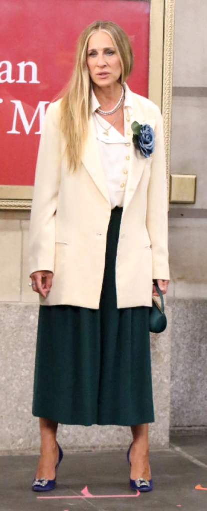 Se filtraron nuevas imágenes de la grabación de la serie donde aparece Sarah Jessica Parker con un look muy glamoroso para un día de oficina.