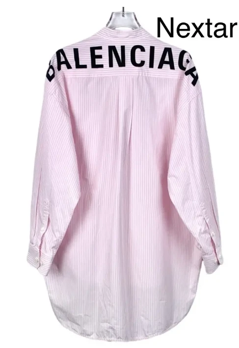 La empresaria eligió una blusa rayada en color rosa, oversize y con logo de Balenciaga en la espalda aunque, vale aclarar no es un ítem de la colección actual de la marca de lujo.