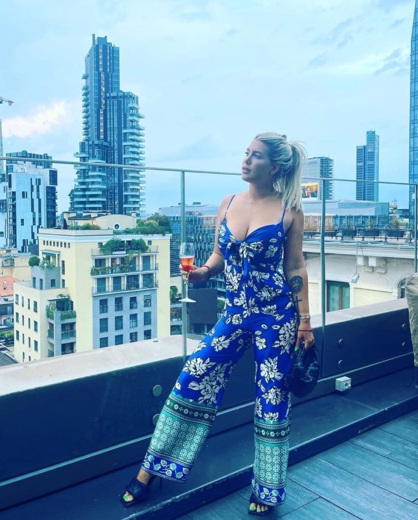 Wanda Nara llevó un mono estampado con flores con detalle fruncido en el corpiño. Lo combinó con unas mules altas con capellada trenzada y una cartera de mano de Bottega Veneta.