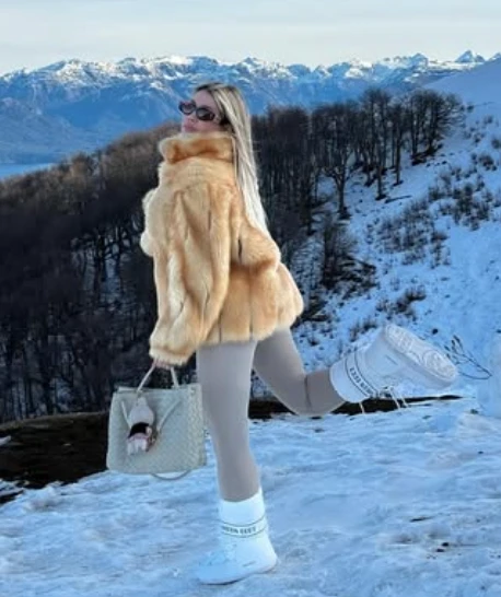 Wanda, lució dos versiones del catsuit: uno azul marino combinado con un gorro de peluche en forma de oso (súper viral) y otro en tono nude que destacó su figura. En ambos looks, sumó botas de nieve, abrigos de piel y accesorios de lujo, logrando una chic con aire deportivo.