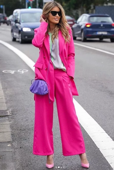 El street stye también incorporó el rosa intenso a sus looks y apoderándose de todas las miradas.