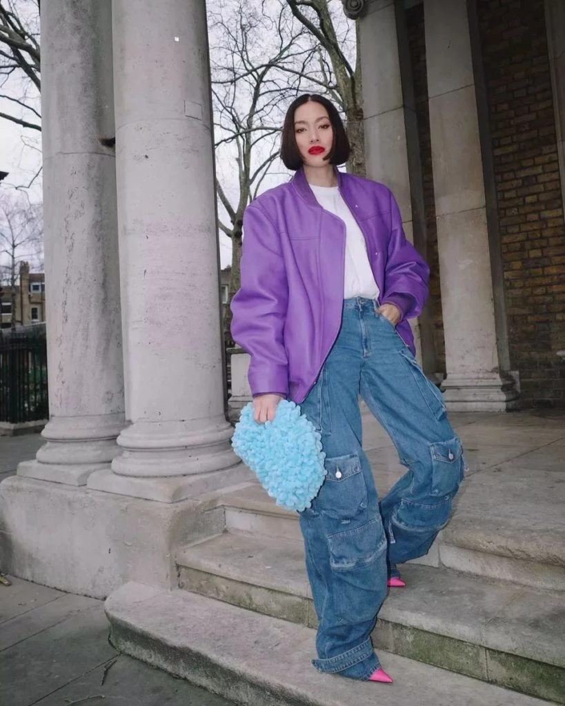 Los estilismos urbanos nos muestra que los pantalones cargo pueden combinarse con prendas más sofisticadas como un saco de tweed o con lentejuelas.