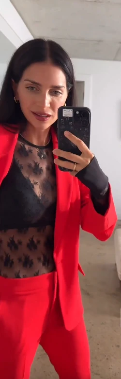 Zaira Nara mostró un look de otoño en el que combinó dos ítems del otoño 2024: el conjunto sastrero y el body, con transparencias.