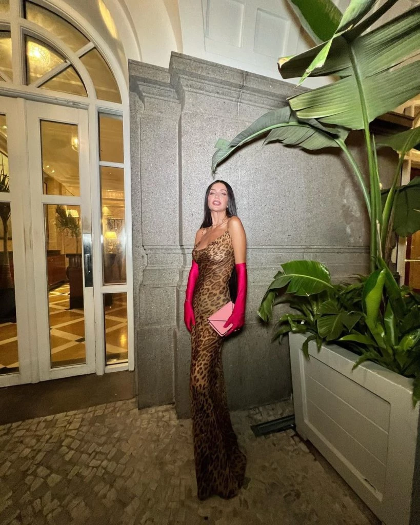 En el caso de Zaira, la modelo y conductora llegó a la ciudad de Río de Janeiro para vivir el carnaval y por supuesto, este look no podía faltar. La hermana de Wanda Nara lució un vestido tubo de seda con escote bote, con transparencias ya que dejaba ver su ropa interior, que combinó con guantes fuscia y un monedero rosa.