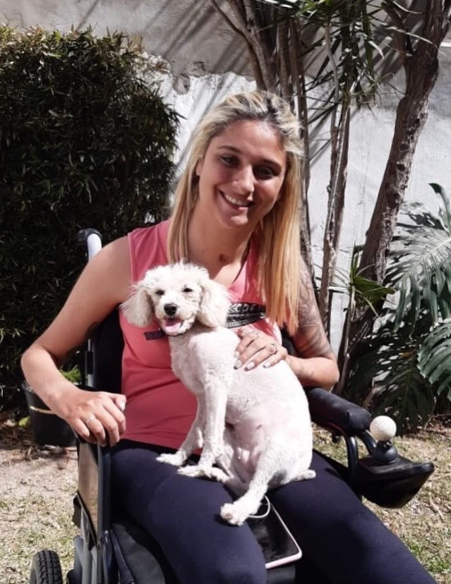 -Aquel día, un 31 de diciembre de 2010, yo estaba en la casa una amiga, tenía 14 años y quise hacer un salto mortal en el aire en una pileta pelopincho, me paré en uno de los esquinero y salté. Y cuando caí, toqué mi cuello con el piso. En ese momento, se me desplazó la médula, quedé inmóvil, bajo el agua, no podía salir. La mamá de mi amiga fue a buscarme para almorzar y vio que yo estaba sola en el fondo de la pileta, entonces llamó a Emanuel, que es el hermano de esta amiga y él me sacó de la pileta de los pelos.