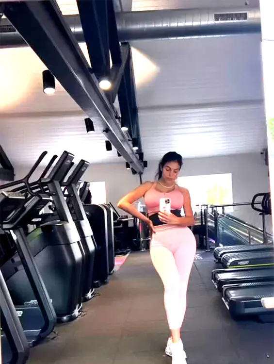 Aunque no pudo improvisar una sonrisa, Georgina posteó una foto en Instagram en el gimnasio en donde lucía una musculosa rosa, una calza en un tono más claro de ese mismo color y zapatillas blancas.